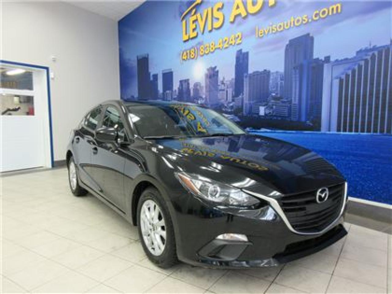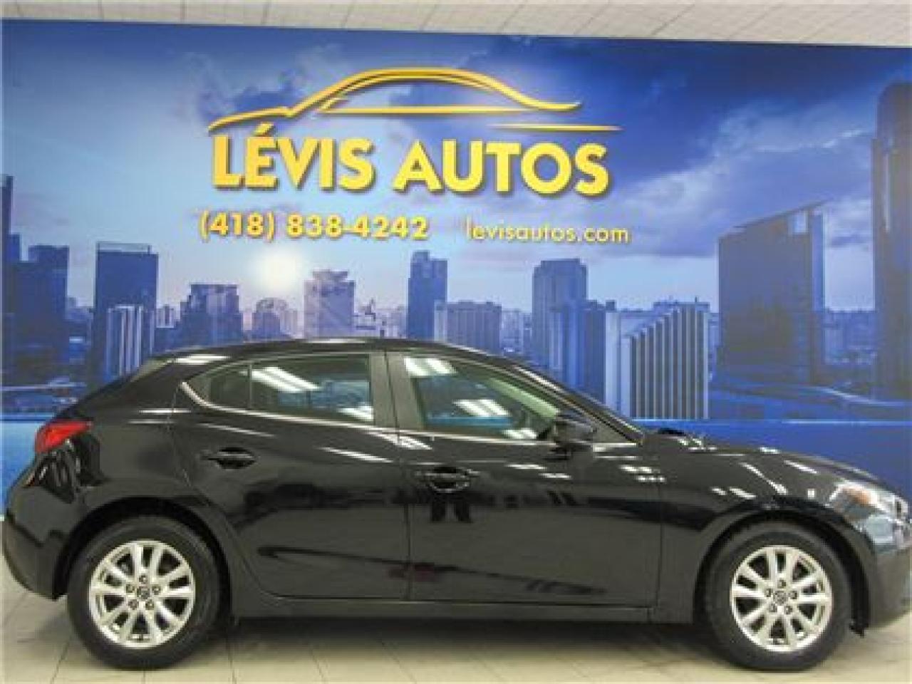 MAZDA 3 2015 GS SKYACTIV NOIR CAMÉRA DE RECUL+BLUETOOTH AVEC SEULEMENT 29800 KM CERTIFIÉ (UNIQUE PROPRIÉTAIRE, RAPPORT CARPROOF DISPONIBLE) MOTEUR 2.0 LITRES SKYACTIV D'EXCELLENTE RÉPUTATION OFFRANT UNE TRÈS BONNE PUISSANCE EN PLUS D'ÊTRE EXTRÊMEMENT ÉCONOMIQUE. TRANSMISSION 6 VITESSES MANUELLE, MAGS 16 POUCES SUR PNEUS D'HIVER EN TRÈS BONNE CONDITION, AIR-CLIMATISÉ, CRUISE CONTROL, LECTEUR CD MP3 AVEC PRISE AUXILIAIRE/USB/SIRIUS+ÉCRAN TACTILE, BLUETOOTH, VOLANT AJUSTABLE ET TÉLESCOPIQUE, GROUPE ÉLECTRIQUE COMPLET, ENTRÉE ET DÉMARRAGE SANS CLEF+PUSH-START, ORDINATEUR DE BORD, RPM, FREIN ABS. BALANCE DE GARANTIE MAZDA DE 5 ANS OU 100000 KM MOTOPROPULSEUR FINISSANT LE 31 DÉCEMBRE 2019 (GARANTIE PROLONGÉ DISPONIBLE À PRIX IMBATTABLE AVEC LE CAA ET PPP). TAUX DE FINANCEMENT À PARTIR DE SEULEMENT 4.69%. VÉHICULE EXTRÊMEMENT PROPRE A VOIR ABSOLUMENT! POUR PLUS D'INFOS, CELL:418-554-7565/418-838-4242. NOUS SOMMES SITUÉ AU 4585 BOULEVARD GUILLAUME-COUTURE LÉVIS G6W-6M6.LE PLUS GRAND CHOIX DE VÉHICULES USAGÉS À LÉVIS. AU PLAISIR DE VOUS SERVIR. VISITEZ NOTRE SITE INTERNET WWW.LEVISAUTOS.COM
