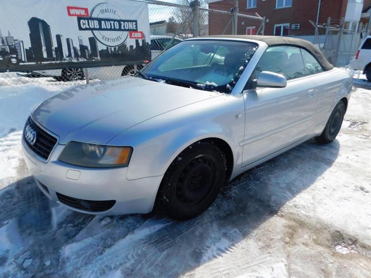 VISA/MASTERCARD ACCEPTÉ AUDI A4 CONVERTIBLE 2004 MOTEUR 4 CYL. 1.8 LITRES 178 700 KM AUTOMATIQUE ANTIBROUILLARD GROUPE ÉLECTRIQUE AIR CLIMATISÉ VOLANT EN CUIR LECTEUR CD INTÉRIEUR EN CUIR CRUISE CONTROL AIR CLIMATISÉ AUTOMATISÉ SIÈGES ÉLECTRIQUES 450-442-2886**CLUBAUTOZONE.COM** Chez CLUB AUTO- ZONE NOUS ACCEPTONS LES ÉCHANGES On LIQUIDE les échanges des concessionnaires pas DE VOITURES INCONNUES des encans. On paie moins chers, on vend moins chers. ***NOUVEAUX VÉHICULES À BAS PRIX TOUS LES JOURS***. Honnêteté, simplicité, transparence. NOTRE CENTRE DE LIQUIDATION EST À SEULEMENT 15 MINUTES DE MONTRÉAL, ACCESSIBLE PAR L'AUTOROUTE 30 PAR LA ROUTE 132 ET LA 116 NOUS SOMMES PRÈS DES PONTS JACQUES CARTIER, CHAMPLAIN, VICTORIA, TUNNEL LOUIS HIPPOLYTE LAFONTAINE N'HÉSITEZ PAS À NOUS CONTACTER, CAR NOUS SOMMES DISPONIBLES À RÉPONDRE À VOS DEMANDES : CLUB AUTO ZONE.COM VENEZ VOIR NOTRE INVENTAIRE SUR PLACE AU 1310, BOUL TASCHEREAU LONGUEUIL J4P 3M4 450-442-2886 AU PLAISIR DE VOUS VOIR**CLUBAUTOZONE.COM**