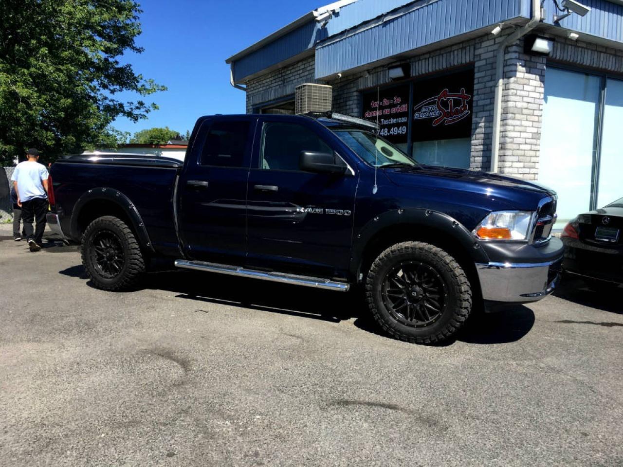 2012 RAM 1500 4X4 QUAD CAB EN SUPERBE CONDITION MECANIQUE ET ESTHETIQUE!!!!! JAMAIS ACCIDENTE, 97360KM, BLEU/GRIS, JANTES ALUMINIUM 20'' AVEC QUATRES PNEUS NEUF!!!, CONTOUR AILES, BAR AU LEDS 52'', LIFT KIT 3.5'' , MARCHE-PIED, ATTACHE-REMORQUE, AIR CLIMATISE, GROUPE ELECTRIQUE, CRUISE CONTROLE, VITRES TEINTEES ET PLUS..... A VOIR!!!! GARANTIE ET INSPECTION INCLUSES, POSSIBILITE D'AJOUTER UNE GARANTIE PROLONGEE DE 5 ANS OU 200000KM , FINANCEMENT BANCAIRE MAISON 1E 2E 3E CHANCE DE CREDIT DISPONIBLE, AUCUN CAS DE CREDIT REFUSE , www.autoeleganceselect.ca ou
