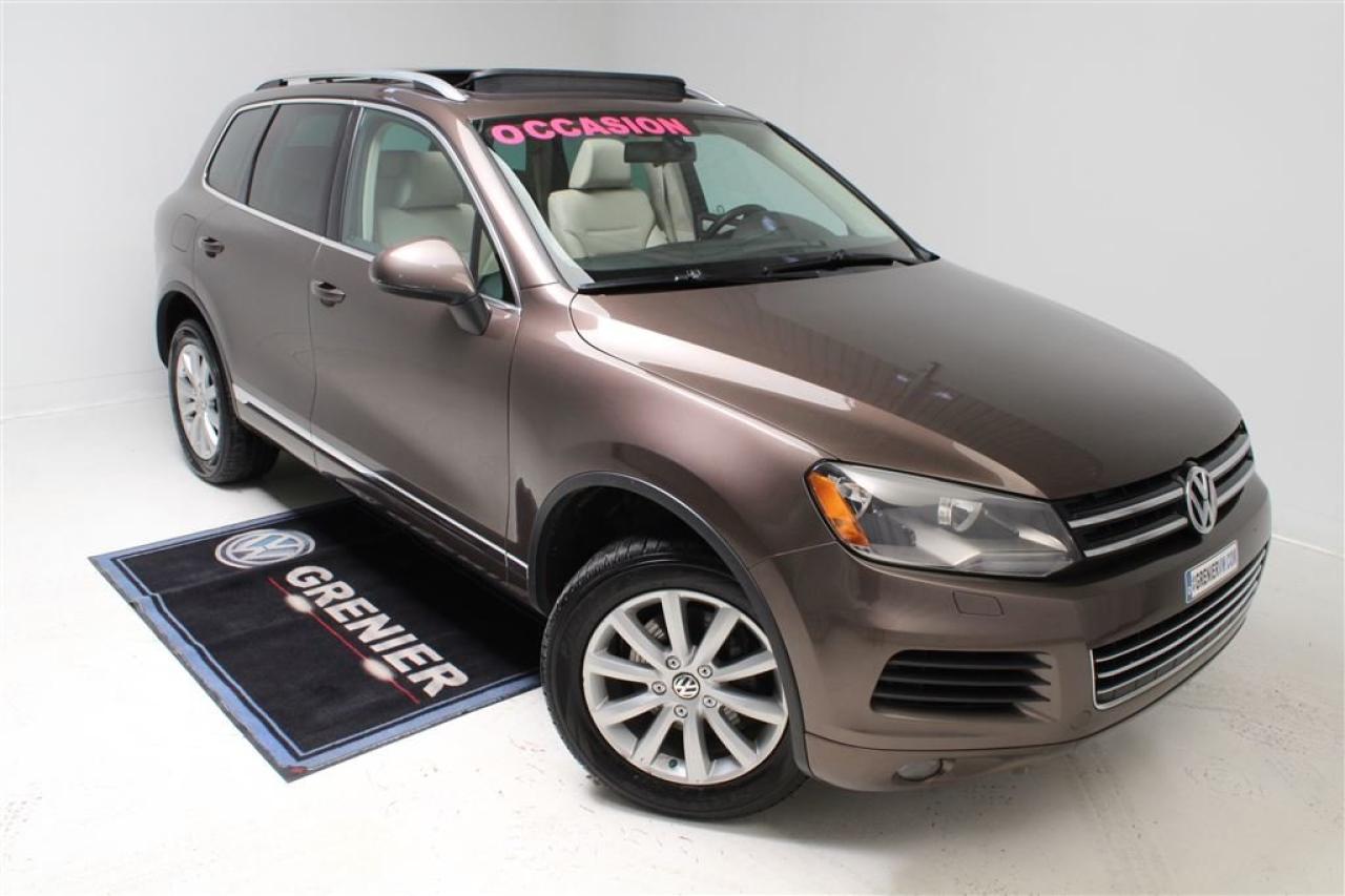 Volkswagen Touareg COMFORTLINE+TOIT+NAV POUR UNE VOLKSWAGEN DE QUALITE C\'EST CHEZ GRENIER 2013Régulateur de vitesse, Essuie-glaces intermittents, Anti-démarreur, Freins ABS, Contrôle de stabilité, Coussin gonflable conducteur, Coussins gonflables latéraux, Lecteur CD, Lecteur MP3, Lampes de lecture arrière, Volant ajustable, Tapis protecteurs, Caméra de recul, Volant gainé de cuir, Phares automatiques, Rétroviseur électrique, Direction assistée, Rétroviseurs chauffants, Siège à réglage électrique, Coussins gonflables arrière pour la tête, Siège conducteur - soutien lombaire, Siège passager - soutien lombaire, Système de protection au capotage, Freins à disque, Sièges chauffants - Avant, Antipatinage, Phares antibrouillards, Verrous de sécurité pour enfants, Système de surveillance de la pression des pneus, Sièges baquets, Technologie Bluetooth intégrée, Entreposage Média sur disque dur, Rétroviseur à atténuation automatique, Aluminium, Climatisation