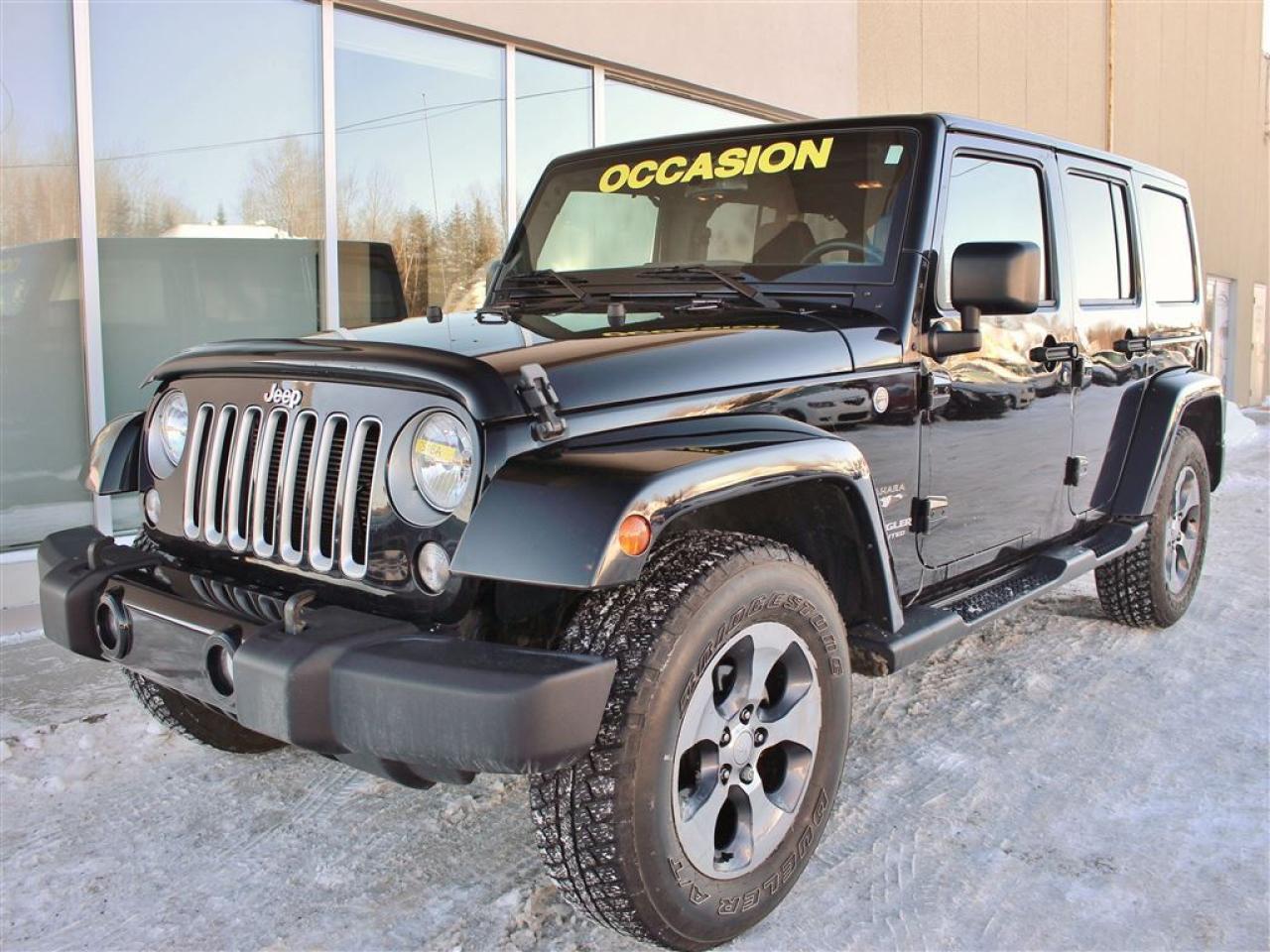 **Rapport d'historique + d'inspection CERTIFIÉ **Véhicule disponible pour une DURÉE LIMITÉE **Programme 100% approuvé et 0$ comptant UNIQUE (financement facile et rapide) **APPROBATION en 10 minutes / 250 plans de financement disponibles **Programme TRANQUILITÉ D'ESPRIT CERTIFIÉ et remise à neuf offert **Prêt pour LIVRAISON IMMÉDIATE **ON REPREND TOUT EN ÉCHANGE : Autos, camions, VTT, motos, motoneiges, bateaux, VR et plus **Jusqu'à 35% DE PLUS que la valeur du marché pour votre échange **LIVRAISON PARTOUT au Québec et au Canada **Informez-vous! + de 500 AUTRES VÉHICULES et camions d'occasion sur place. Plus de 6000 autres disponibles sur demande **WE SPEAK ENGLISH TOO! SO DON'T HESITATE TO CALL US OR TO COME SEE US **Toit amovible **Système de navigation **Connexion Bluetooth / Mains libres **Ensemble de remorquage **Marche-pieds **Jantes aluminium **Sièges chauffants **Écran tactile 5 po **Climatiseur **Régulateur de vitesse **Télédéverrouillage **Prises de courant 12V **Et beaucoup plus! **Removable roof **Navigation system **Bluetooth connection / Hands-free device **Towing assembly **Running boards **Aluminium Mags **Heated seats **5 inch touch screen **A/C clean system **Cruise control **Remote keyless entry **12V power outlets **And much more! **Certified CarProof report + certified inspection **Vehicle available for a LIMITED TIME **EXCLUSIVE 100% approved credit and $0 cash down Program (easy financing) **BE APPROVED in 10 minutes / 250 financing plans **Ready for FAST DELIVERY **WE TAKE ALL TRADE-INS: cars, trucks, ATVS, snowmobiles, motorcycles, boats, RV and more. **Up to 35% MORE for your trade-in **DELIVERY EVERYWHERE in Quebec and Canada **Contact us! More than 500 OTHER CARS, SUV and trucks available. Nos conseillers certifiés et professionnels sauront vous offrir une expérience dachat personnalisée et conviviale pour lachat de votre nouveau véhicule. Certains accessoires additionnels en sus. Bien que nous ayons pris toutes les mesures raisonnables pour nous assurer de la précision des renseignements fournis, nous ne sommes pas responsables de toute erreur ou omission. Veuillez contre-vérifier les renseignements auprès de lun de nos experts. Dans le cas où un véhicule publié contiendrait des renseignements inexacts à cause d'une erreur typographique, photographique, sur le prix ou autre, le concessionnaire se réserve le droit de refuser ou d'annuler toute demande. Contactez-nous aussi pour en savoir plus sur nos rabais additionnels en concession. VERSIONS DISPONIBLES : Sport, Willys Wheeler, Sahara, 75 anniv., Rubicon Our certified and professional consultants will offer you a personalized and user-friendly purchasing experience for your new vehicle. Although we have taken all reasonable steps to ensure the accuracy of the information provided, we are not responsible for any errors or omissions. Please check with one of our experts. In the event that a published vehicle contains inaccurate information due to a typographical, photographic, price or other error, the dealer reserves the right to refuse or cancel any request. Contact us to learn more about our additional dealer discounts