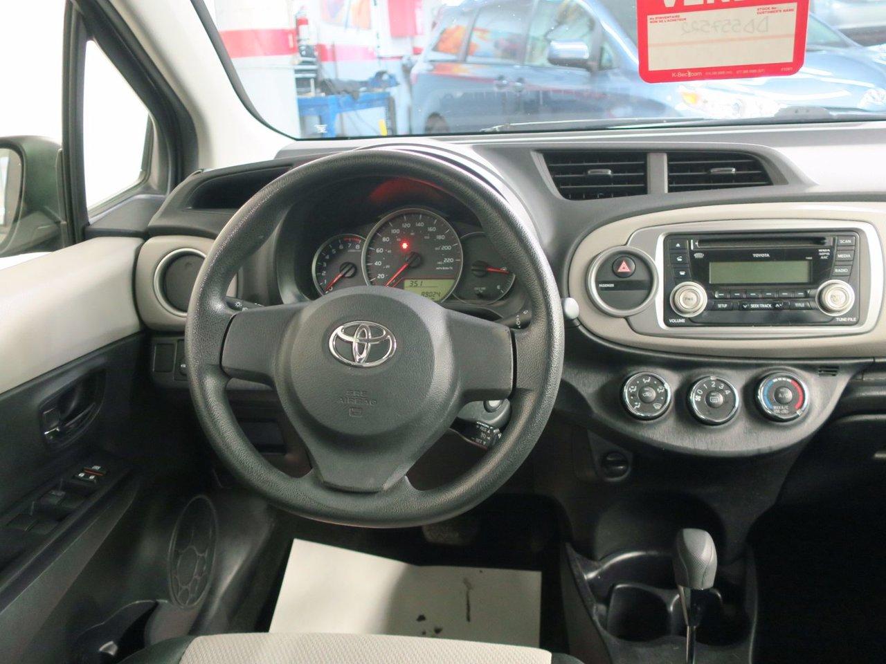 Toyota Yaris Hatchback Gr. Commodit? 2013Régulateur de vitesse, Freins ABS, Contrôle de stabilité, Coussin gonflable conducteur, Coussins gonflables latéraux, 6 Haut-parleurs, Portes électriques, Tachymètre, Vitres électriques, Air climatisé, Sièges arrières rabattables, Volant ajustable, Ordinateur de bord, Tout équipé, Radio AM/FM, Direction assistée, Télédéverrouillage, Banquette arrière divisé, Rétroviseurs électriques, Antipatinage, Port USB