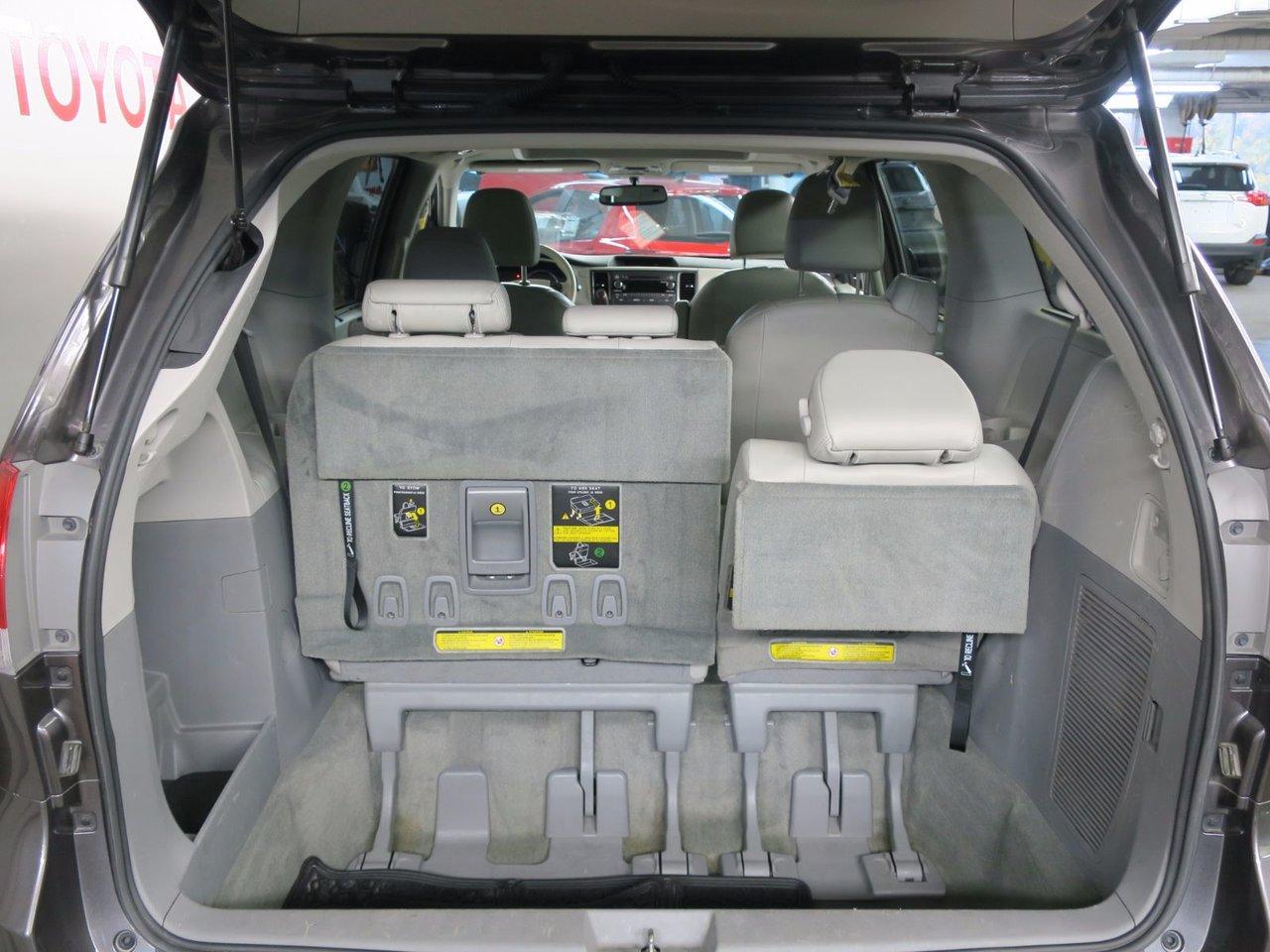 Toyota Sienna XLE 2014Régulateur de vitesse, Toit ouvrant, Essuie-glace arrière, Freins ABS, Contrôle de stabilité, Coussins gonflables latéraux, 6 Haut-parleurs, Portes électriques, Tachymètre, Vitres électriques, Air climatisé, Intérieur en cuir, Commandes audio au volant, Sièges arrières rabattables, Sièges chauffants, Volant ajustable, Tapis protecteurs, Vitres teintées, Ordinateur de bord, Tout équipé, Caméra de recul, Radio AM/FM, Rétroviseurs, Direction assistée, Télédéverrouillage, Rétroviseurs chauffants, Banquette arrière divisé, Siège à réglage électrique, Démarrage sans clé, Rétroviseurs électriques, Jantes en alliage, Antipatinage, Phares antibrouillards, Support à bagages, Port USB, Chaise style capitaine, Climatiseur automatique