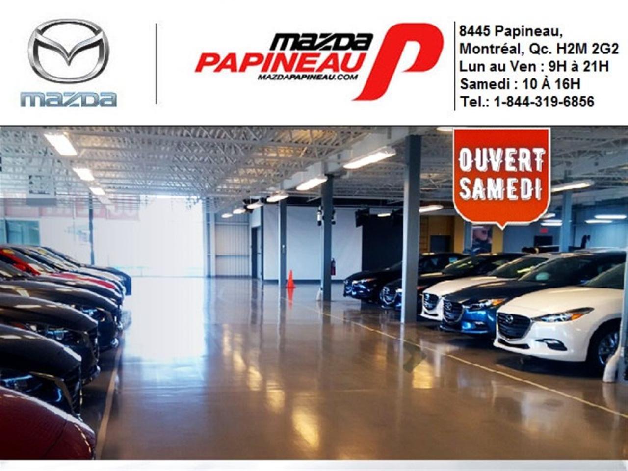 **Garantie Mazda Groupe Motopropulseur jusqu'au 24 aout 2019 Km Illimitee** Nos véhicules ont bénéficiés d'une inspection mécanique en 160 points, d'un entretient complet et d'une remise à neuf esthétiques. Profitez de notre programme de véhicule d'occasion certifié Mazda. Avec Mazda Papineau, vous roulez en toute confiance. Au plaisir de vous rencontrez bientôt. N.B.: Prix au comptant. Le prix exclut les frais du programme certifié Mazda. Taxes en sus. Terme de financement indiqué calculer entre 12 et 84 mois, appelez pour plus de renseignements. MAZDA PAPINEAU