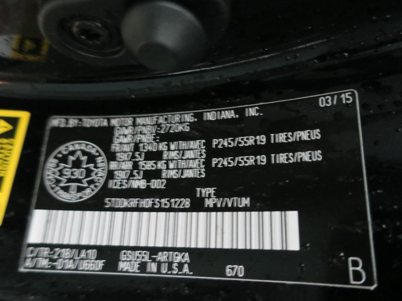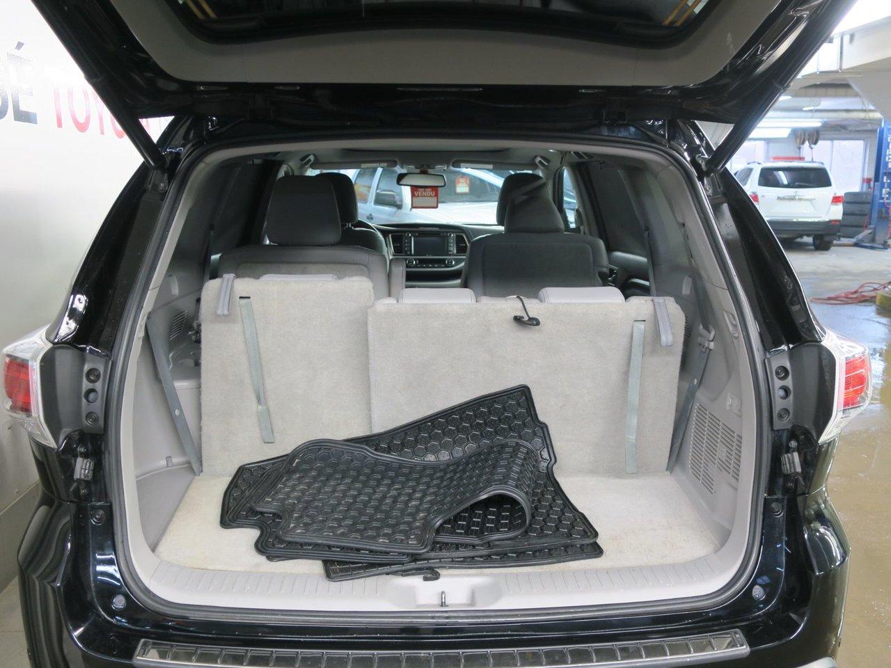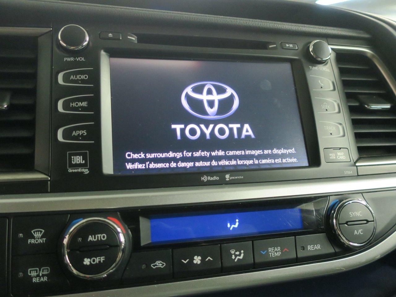 Toyota Highlander Limited 2015Régulateur de vitesse, Essuie-glaces intermittents, Anti-démarreur, Freins ABS, Contrôle de stabilité, Coussin gonflable conducteur, Coussins gonflables latéraux, Lecteur CD, Lecteur MP3, Intérieur en cuir, Siège mémoire, Volant ajustable, Moonroof, Tapis protecteurs, Caméra de recul, Volant gainé de cuir, Phares automatiques, Rétroviseur électrique, Sièges arrières chauffants, Direction assistée, Sièges de troisième rangée, Rétroviseurs chauffants, Siège à réglage électrique, Coussins gonflables arrière pour la tête, Siège conducteur - soutien lombaire, Siège refroidissant, Démarrage sans clé, Freins à disque, Sièges chauffants - Avant, Antipatinage, Phares antibrouillards, Verrous de sécurité pour enfants, Système de surveillance de la pression des pneus, Sièges baquets, Technologie Bluetooth intégrée, Climatisation arrière, Rétroviseur à atténuation automatique, Surveillance de l'angle mort, Chrome, Climatisation, Volant chauffant