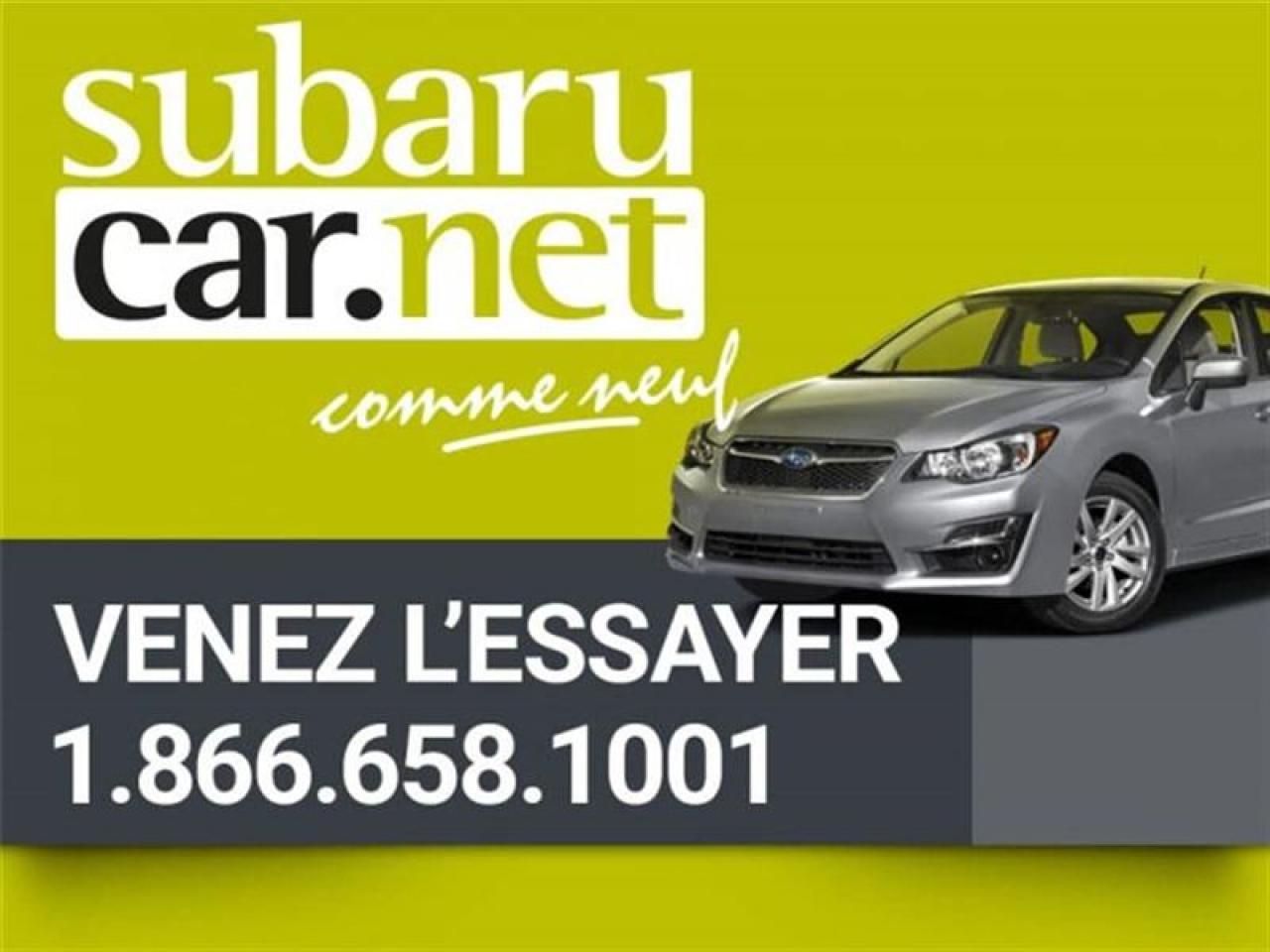 ***Véhicule vendu sans garantie légale.***BLUETOOTH, SIÈGE EN CUIR, SIÈGE ÉLECTRIQUE, RÉGULATEUR DE VITESSE, À NE PAS MANQUER!!Nous sommes ouverts: du lundi au jeudi de 8h à 21h; le vendredi et samedi de 9h à 17h. Demandez-nous de l'historique du rapport Carproof. SubaruCAR.net est un concessionnaire automobile spécialisé dans la vente et l'entretien de Subaru d'occasion. Tous nos frais d'inspection et de reconditionnement des véhicules sont inclus dans notre prix. Aucun frais caché. Nos algorithmes vous permettent d'avoir le meilleur rapport qualité-prix. Plus de 100 véhicules en inventaire. La plupart de nos véhicules sont certifiés et prêts pour la livraison. Nous livrons partout au pays. Venez voir le véhicule sur notre site internet pour plus de détail: https://subarucar.net. Demandez-nous une évaluation de votre échange nous sommes à la recherche de véhicule pour notre inventaire. Téléphonez pour un financement facile, sans tracas, 1re, 2e et 3e chance au crédit. Aucun cas refusé, financement maison, taux avantageux, livraison rapide. Nous avons plusieurs programmes de garantis pour s'ajuster à vos besoins. We can serve you in English if you want. L'équipement peut varier, voire en concession. Faites affaire avec une entreprise familiale de deuxième génération qui existe depuis 1960. Un Subaru, ça s'achète chez un spécialiste. Nous sommes garage recommandé par CAA Québec depuis 1994. Nous sommes situés à 30 minutes de Montréal sur la rive sud. Contactez-nous au SubaruCAR.net, 300 boul. Richelieu, route 112, Richelieu, Vente@SubaruCAR.net, SMS MMS texto 514.703.7822, Téléphone 1.450.914.1009.