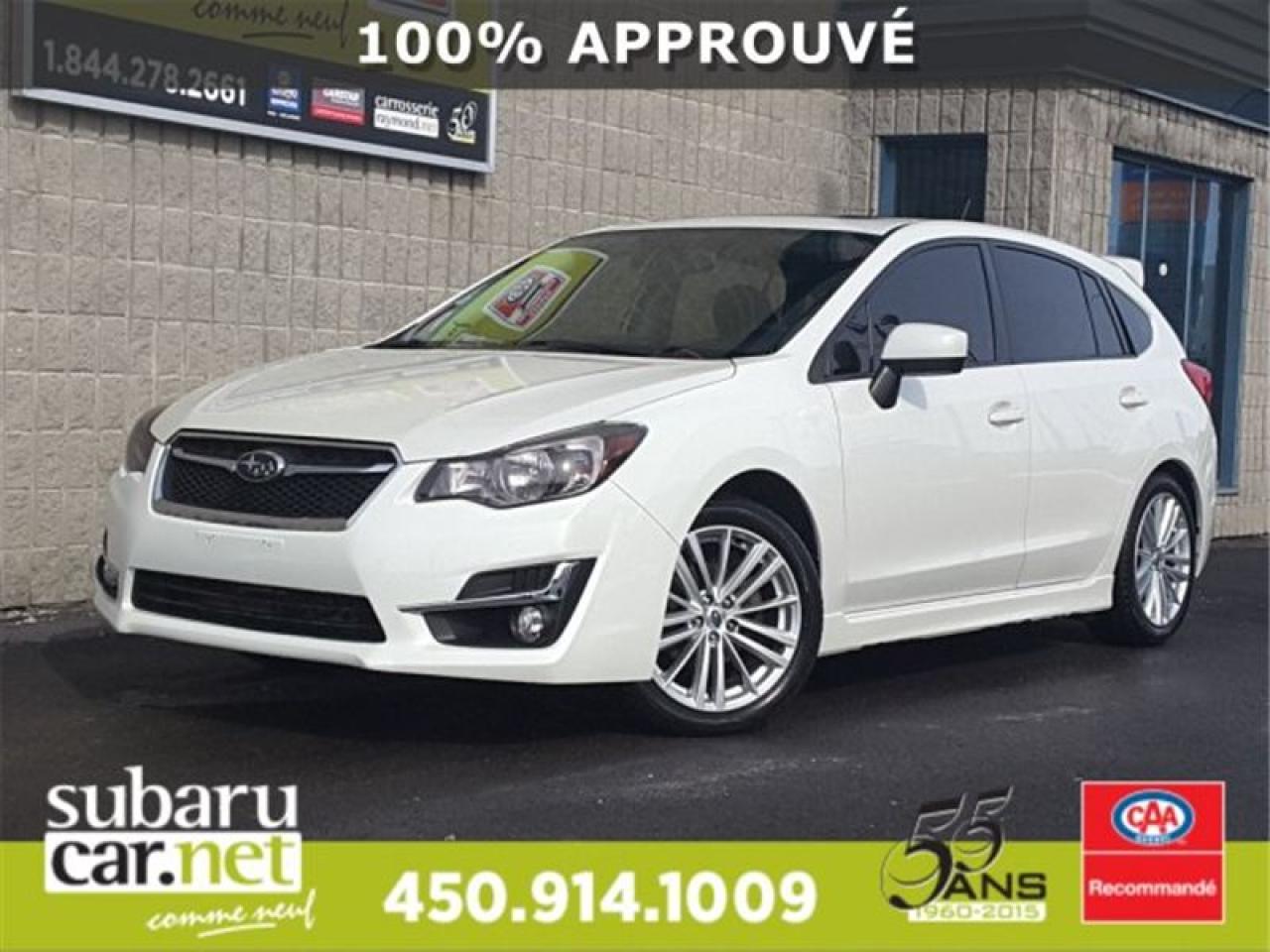 SPORT, CAMÉRA DE RECUL, SIÈGE CHAUFFANT, BLUETOOTH, RÉGULATEUR DE VITESSE, À NE PAS MANQUER!!Nous sommes ouverts: du lundi au jeudi de 8h à 21h; le vendredi et samedi de 9h à 17h. Demandez-nous de l'historique du rapport Carproof. SubaruCAR.net est un concessionnaire automobile spécialisé dans la vente et l'entretien de Subaru d'occasion. Tous nos frais d'inspection et de reconditionnement des véhicules sont inclus dans notre prix. Aucun frais caché. Nos algorithmes vous permettent d'avoir le meilleur rapport qualité-prix. Plus de 100 véhicules en inventaire. La plupart de nos véhicules sont certifiés et prêts pour la livraison. Nous livrons partout au pays. Venez voir le véhicule sur notre site internet pour plus de détail: https://subarucar.net. Demandez-nous une évaluation de votre échange nous sommes à la recherche de véhicule pour notre inventaire. Téléphonez pour un financement facile, sans tracas, 1re, 2e et 3e chance au crédit. Aucun cas refusé, financement maison, taux avantageux, livraison rapide. Nous avons plusieurs programmes de garantis pour s'ajuster à vos besoins. We can serve you in English if you want. L'équipement peut varier, voire en concession. Faites affaire avec une entreprise familiale de deuxième génération qui existe depuis 1960. Un Subaru, ça s'achète chez un spécialiste. Nous sommes garage recommandé par CAA Québec depuis 1994. Nous sommes situés à 30 minutes de Montréal sur la rive sud. Contactez-nous au SubaruCAR.net, 300 boul. Richelieu, route 112, Richelieu, Vente@SubaruCAR.net, SMS MMS texto 514.703.7822, Téléphone 1.450.914.1009.