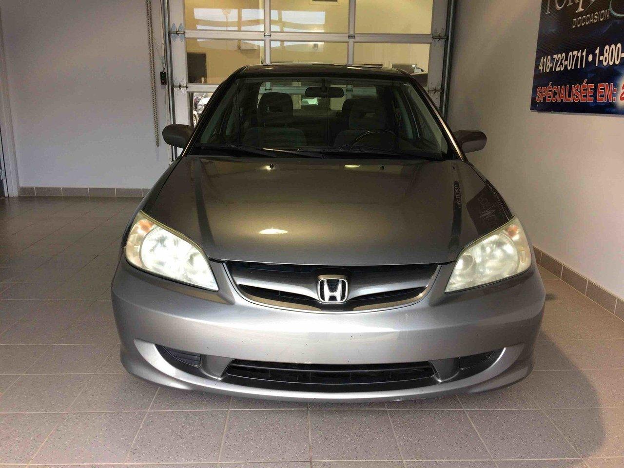 Honda Civic Sdn SI 2005\n\nRégulateur de vitesse, Toit ouvrant, Essuie-glaces intermittents, Anti-démarreur, Freins ABS, Coussin gonflable conducteur, Lecteur CD, Vitres électriques, Air climatisé, Lampes de lecture arrière, Volant ajustable, Moonroof, Volant gainé de cuir, Rétroviseur électrique, Direction assistée, Rétroviseurs chauffants, Sièges tissu, Freins à disque, Sièges baquets, Aluminium, Climatisation\n\nPOUR LE PLUS GRAND CHOIX À UN SEUL ENDROIT, LE MEGA CENTRE DE L'USAGÉ DANS L'EST DU QUÉBEC. COUVRANT LA GRANDE RÉGION DE RIMOUSKI, MATANE, MONT-JOLI, RIVIÈRE-DU-LOUP, STE-ANNE DES MONTS, MATAPÉDIA,GASPÉSIE... CONTACTEZ-NOUS SANS FRAIS AU 1-877-864-3666 LIVRAISON PARTOUT AU QUÉBEC.