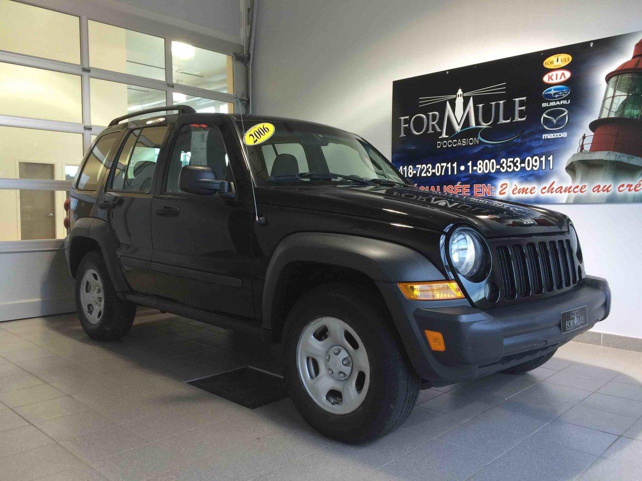 Jeep Liberty Sport 2006\n\nEssuie-glaces intermittents, Anti-démarreur, Freins ABS, Contrôle de stabilité, Coussin gonflable conducteur, Lecteur CD, Lampes de lecture arrière, Volant ajustable, Tapis protecteurs, Rétroviseur électrique, Direction assistée, Sièges tissu, Freins à disque, Antipatinage, Sièges baquets, Roue de secours - Temporaire, Climatisation\n\nPOUR LE PLUS GRAND CHOIX À UN SEUL ENDROIT, LE MEGA CENTRE DE L'USAGÉ DANS L'EST DU QUÉBEC. COUVRANT LA GRANDE RÉGION DE RIMOUSKI, MATANE, MONT-JOLI, RIVIÈRE-DU-LOUP, STE-ANNE DES MONTS, MATAPÉDIA,GASPÉSIE... CONTACTEZ-NOUS SANS FRAIS AU 1-877-864-3666 LIVRAISON PARTOUT AU QUÉBEC.