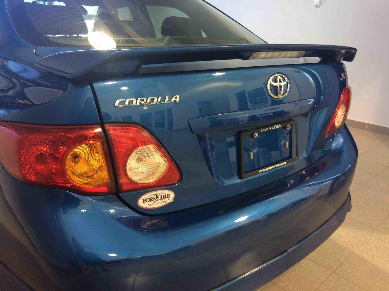 Toyota Corolla S 2009\n\nEssuie-glaces intermittents, Anti-démarreur, Freins ABS, Coussin gonflable conducteur, Coussins gonflables latéraux, Lecteur CD, Lecteur MP3, Volant ajustable, Tapis protecteurs, Rétroviseur électrique, Direction assistée, Rétroviseurs chauffants, Coussins gonflables arrière pour la tête, Sièges tissu, Freins à disque, Verrous de sécurité pour enfants, Sièges baquets\n\nPOUR LE PLUS GRAND CHOIX À UN SEUL ENDROIT, LE MEGA CENTRE DE L'USAGÉ DANS L'EST DU QUÉBEC. COUVRANT LA GRANDE RÉGION DE RIMOUSKI, MATANE, MONT-JOLI, RIVIÈRE-DU-LOUP, STE-ANNE DES MONTS, MATAPÉDIA,GASPÉSIE... CONTACTEZ-NOUS SANS FRAIS AU 1-877-864-3666 LIVRAISON PARTOUT AU QUÉBEC.