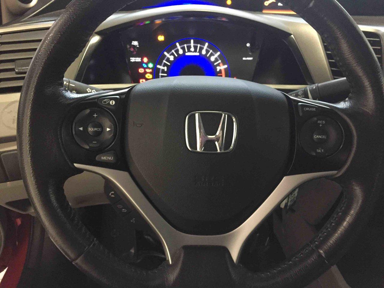 Honda Civic Cpe EX 2012\n\nRégulateur de vitesse, Toit ouvrant, Essuie-glaces intermittents, Anti-démarreur, Freins ABS, Contrôle de stabilité, Coussin gonflable conducteur, Coussins gonflables latéraux, Lecteur CD, Lecteur MP3, Portes électriques, Vitres électriques, Air climatisé, Lampes de lecture arrière, Volant ajustable, Moonroof, Tapis protecteurs, Volant gainé de cuir, Phares automatiques, Rétroviseur électrique, Direction assistée, Rétroviseurs chauffants, Coussins gonflables arrière pour la tête, Sièges tissu, Freins à disque, Antipatinage, Sièges baquets, Technologie Bluetooth intégrée, Aluminium, Climatisation\n\nPOUR LE PLUS GRAND CHOIX À UN SEUL ENDROIT, LE MEGA CENTRE DE L'USAGÉ DANS L'EST DU QUÉBEC. COUVRANT LA GRANDE RÉGION DE RIMOUSKI, MATANE, MONT-JOLI, RIVIÈRE-DU-LOUP, STE-ANNE DES MONTS, MATAPÉDIA,GASPÉSIE... CONTACTEZ-NOUS SANS FRAIS AU 1-877-864-3666 LIVRAISON PARTOUT AU QUÉBEC.