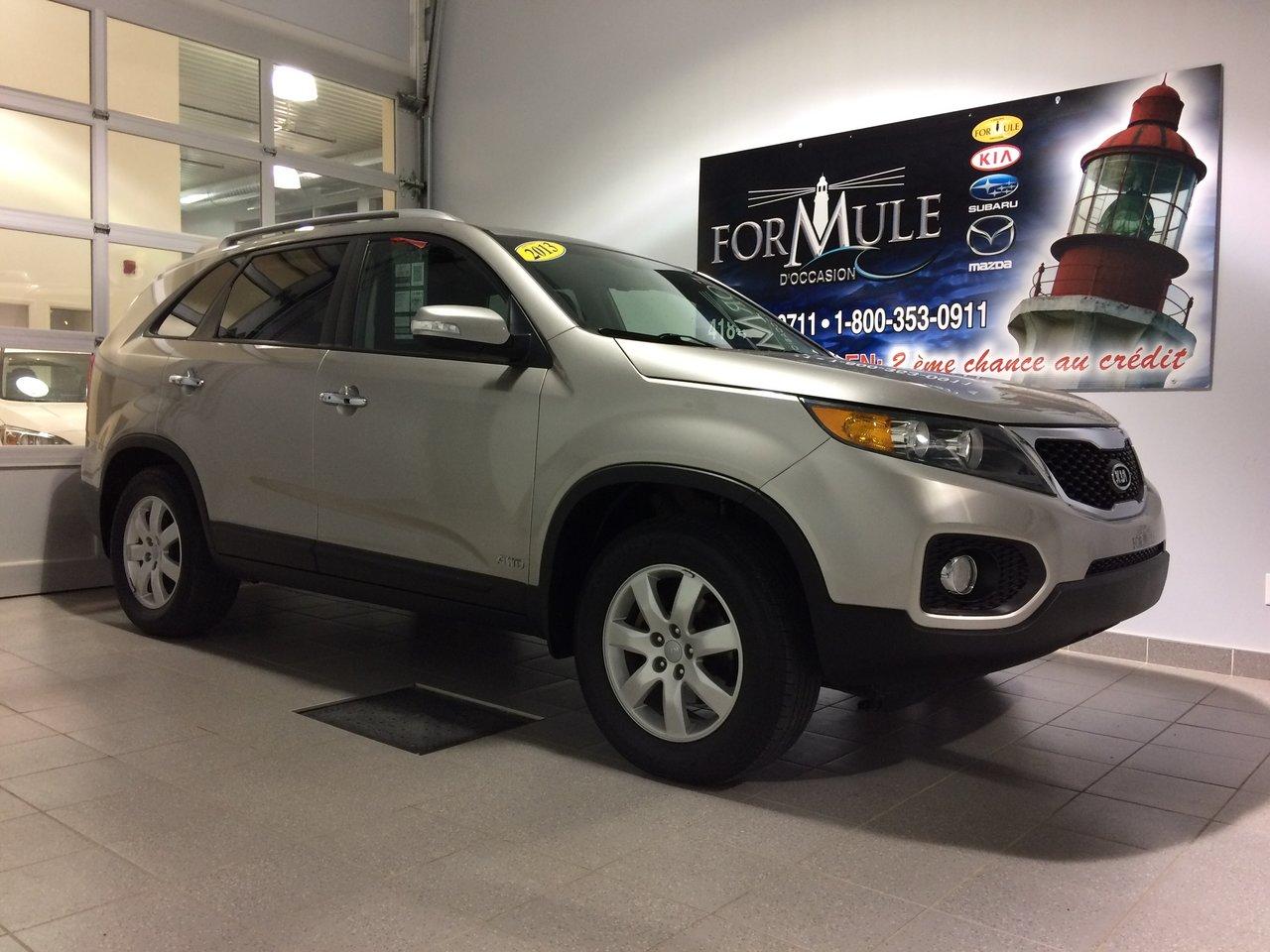Kia Sorento 2013\n\nRégulateur de vitesse, Essuie-glaces intermittents, Anti-démarreur, Freins ABS, Contrôle de stabilité, Coussin gonflable conducteur, Coussins gonflables latéraux, Lecteur CD, Lecteur MP3, Vitres électriques, Air climatisé, Lampes de lecture arrière, Sièges chauffants, Volant ajustable, Tapis protecteurs, Volant gainé de cuir, Phares automatiques, Rétroviseur électrique, Direction assistée, Rétroviseurs chauffants, Coussins gonflables arrière pour la tête, Sièges tissu, Démarrage sans clé, Freins à disque, Sièges chauffants - Avant, Antipatinage, Phares antibrouillards, Verrous de sécurité pour enfants, Sièges baquets, Technologie Bluetooth intégrée, Coussin gonflable - Commutateur de mise en/hors fo, Rétroviseur à atténuation automatique, Aluminium, Climatisation\n\nPOUR LE PLUS GRAND CHOIX À UN SEUL ENDROIT, LE MEGA CENTRE DE L'USAGÉ DANS L'EST DU QUÉBEC. COUVRANT LA GRANDE RÉGION DE RIMOUSKI, MATANE, MONT-JOLI, RIVIÈRE-DU-LOUP, STE-ANNE DES MONTS, MATAPÉDIA,GASPÉSIE... CONTACTEZ-NOUS SANS FRAIS AU 1-877-864-3666 LIVRAISON PARTOUT AU QUÉBEC.