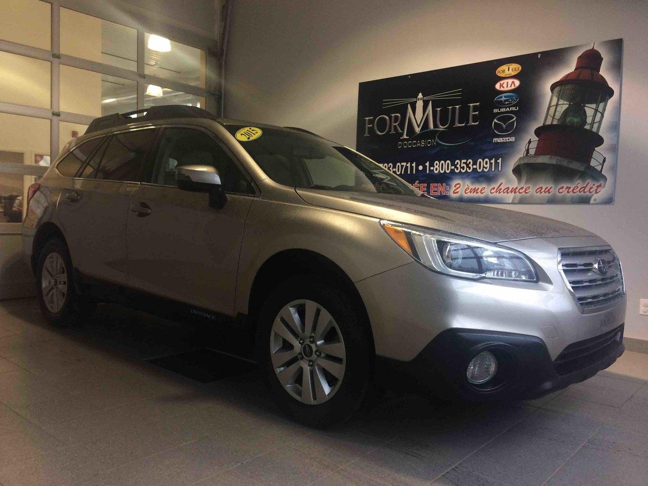 Subaru Outback 3.6r W/touring Pkg 2015\n\nRégulateur de vitesse, Toit ouvrant, Essuie-glaces intermittents, Freins ABS, Contrôle de stabilité, Coussin gonflable conducteur, Coussins gonflables latéraux, Lecteur CD, Lecteur MP3, Portes électriques, Sièges électriques, Vitres électriques, Air climatisé, Sièges chauffants, Volant ajustable, Moonroof, Tapis protecteurs, Radio satellite, Caméra de recul, Phares automatiques, Rétroviseur électrique, Direction assistée, Rétroviseurs chauffants, Siège à réglage électrique, Coussins gonflables arrière pour la tête, Sièges tissu, Siège conducteur - soutien lombaire, Freins à disque, Sièges chauffants - Avant, Jantes en alliage, Antipatinage, Phares antibrouillards, Verrous de sécurité pour enfants, Sièges baquets, Technologie Bluetooth intégrée, Cache bagages, Rétroviseur à atténuation automatique, Surveillance de l'angle mort, Aluminium, Climatisation\n\nPOUR LE PLUS GRAND CHOIX À UN SEUL ENDROIT, LE MEGA CENTRE DE L'USAGÉ DANS L'EST DU QUÉBEC. COUVRANT LA GRANDE RÉGION DE RIMOUSKI, MATANE, MONT-JOLI, RIVIÈRE-DU-LOUP, STE-ANNE DES MONTS, MATAPÉDIA,GASPÉSIE... CONTACTEZ-NOUS SANS FRAIS AU 1-877-864-3666 LIVRAISON PARTOUT AU QUÉBEC.