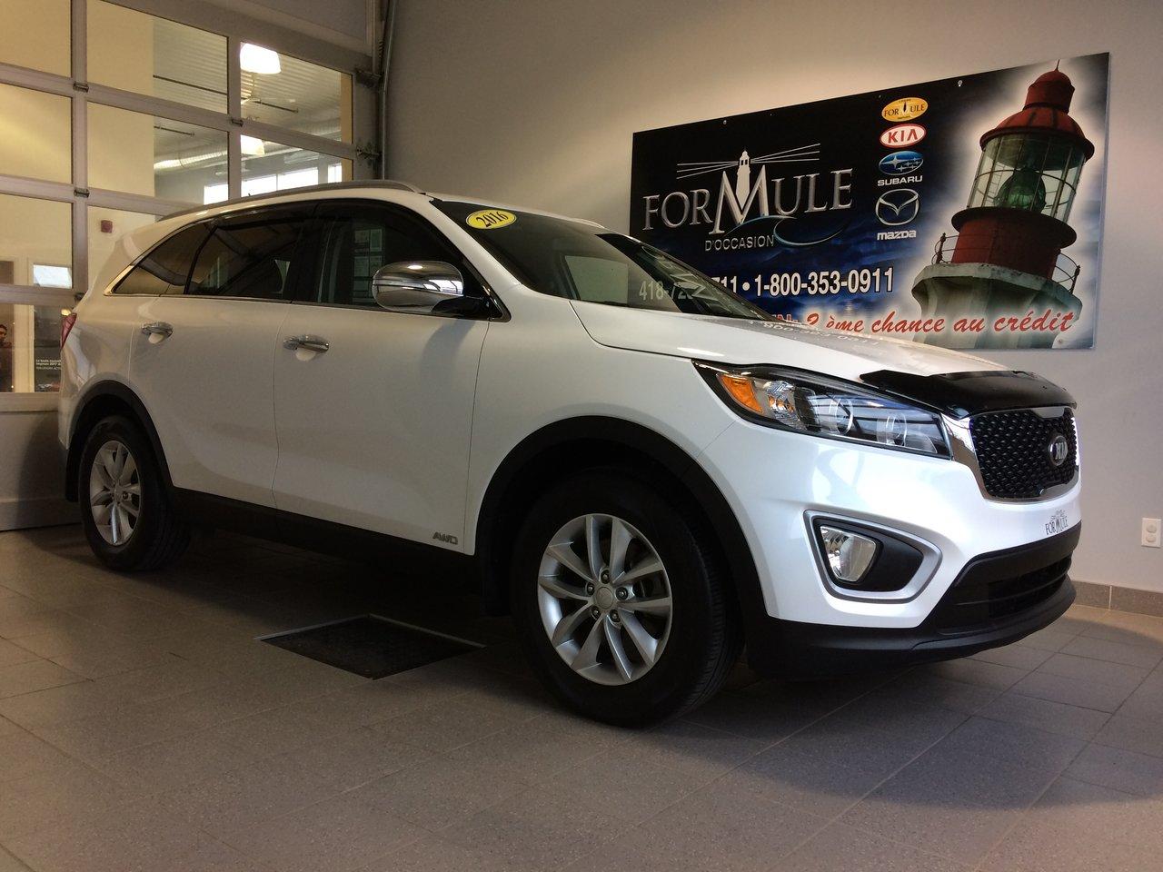 Kia Sorento 2.4l Lx 2016\n\nRégulateur de vitesse, Essuie-glaces intermittents, Anti-démarreur, Freins ABS, Contrôle de stabilité, Coussin gonflable conducteur, Coussins gonflables latéraux, Lecteur CD, Lecteur MP3, Portes électriques, Vitres électriques, Air climatisé, Sièges chauffants, Volant ajustable, Phares automatiques, Rétroviseur électrique, Direction assistée, Rétroviseurs chauffants, Siège à réglage électrique, Coussins gonflables arrière pour la tête, Sièges tissu, Siège conducteur - soutien lombaire, Freins à disque, Sièges chauffants - Avant, Antipatinage, Phares antibrouillards, Verrous de sécurité pour enfants, Sièges baquets, Technologie Bluetooth intégrée, Entreposage Média sur disque dur, Aluminium, Climatisation\n\nPOUR LE PLUS GRAND CHOIX À UN SEUL ENDROIT, LE MEGA CENTRE DE L'USAGÉ DANS L'EST DU QUÉBEC. COUVRANT LA GRANDE RÉGION DE RIMOUSKI, MATANE, MONT-JOLI, RIVIÈRE-DU-LOUP, STE-ANNE DES MONTS, MATAPÉDIA,GASPÉSIE... CONTACTEZ-NOUS SANS FRAIS AU 1-877-864-3666 LIVRAISON PARTOUT AU QUÉBEC.
