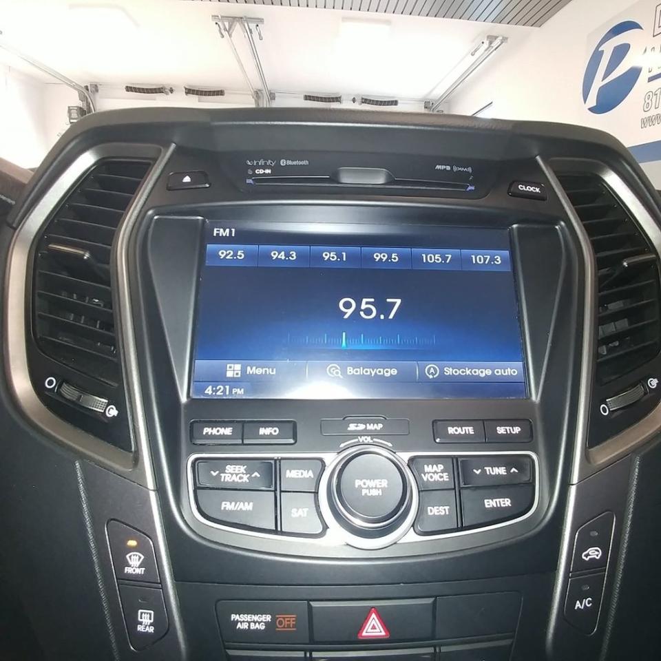 Hyundai Santa Fe Limited 2.0 T 2013Régulateur de vitesse, Essuie-glaces intermittents, Anti-démarreur, Freins ABS, Contrôle de stabilité, Coussins gonflables latéraux, Lecteur CD, Lecteur MP3, Lampes de lecture arrière, Volant ajustable, Tapis protecteurs, Volant gainé de cuir, Phares automatiques, Rétroviseur électrique, Sièges arrières chauffants, Direction assistée, Rétroviseurs chauffants, Siège à réglage électrique, Coussins gonflables arrière pour la tête, Siège conducteur - soutien lombaire, Démarrage sans clé, Freins à disque, Sièges chauffants - Avant, Antipatinage, Phares antibrouillards, Verrous de sécurité pour enfants, Sièges baquets, Technologie Bluetooth intégrée, Climatisation arrière, Aluminium, Climatisation, Volant chauffant