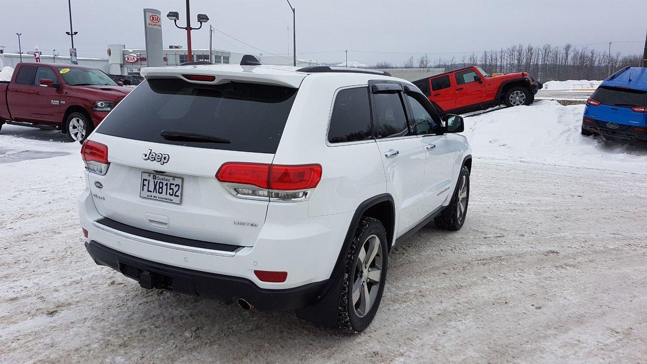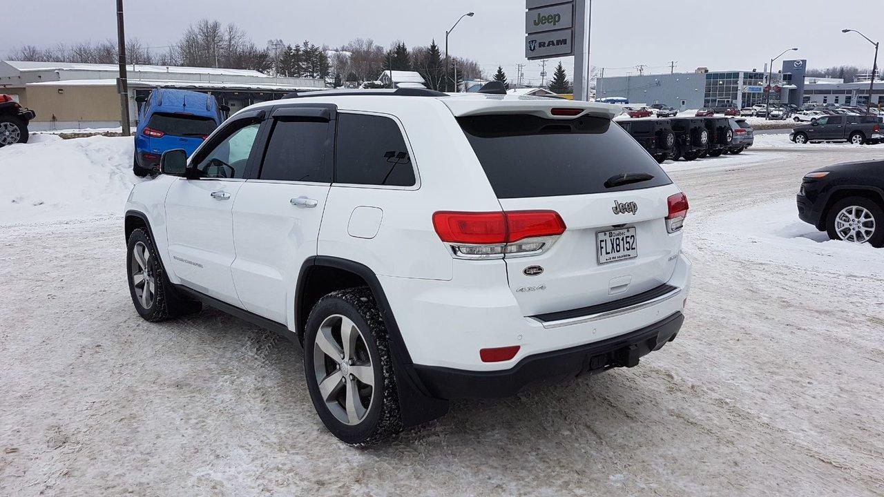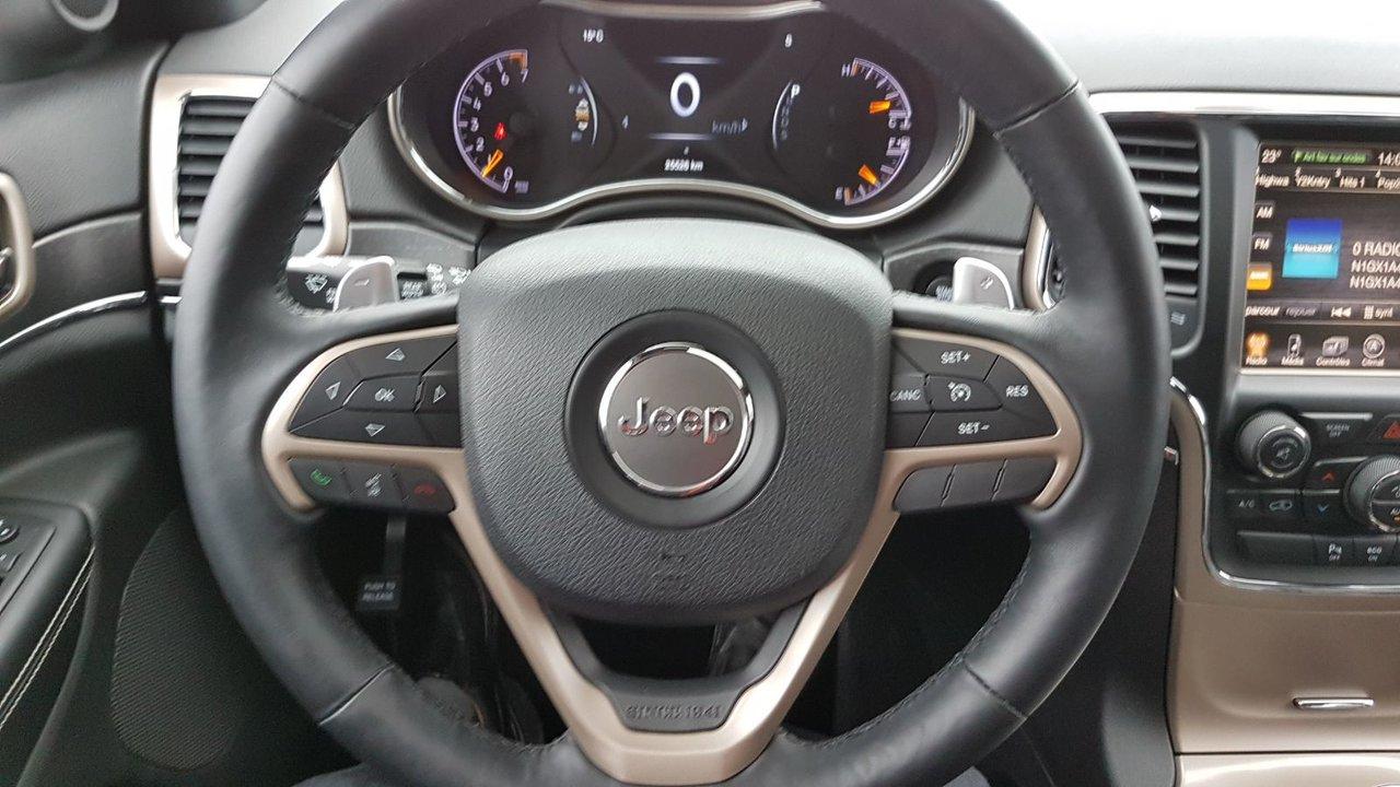 Jeep Grand Cherokee Limited TRES BAS KM 2015Régulateur de vitesse, Toit ouvrant, Essuie-glaces intermittents, Essuie-glace arrière, Anti-démarreur, Freins ABS, Contrôle de stabilité, Coussin gonflable conducteur, Coussins gonflables latéraux, Démarreur à distance, Lecteur CD, Lecteur MP3, 6 Haut-parleurs, Portes électriques, Tachymètre, Vitres électriques, Air climatisé, Intérieur en cuir, Climatisation deux zones, Commandes audio au volant, Sièges arrières rabattables, Sièges chauffants, Siège mémoire, Volant ajustable, Tapis protecteurs, Vitres teintées, Attelage remorque, Phares haute intensité, Ordinateur de bord, Tout équipé, Caméra de recul, Radio AM/FM, Rétroviseurs, Volant gainé de cuir, Phares automatiques, Rétroviseur électrique, Sièges arrières chauffants, Direction assistée, Télédéverrouillage, Rétroviseurs chauffants, Banquette arrière divisé, Siège à réglage électrique, Système d\'alarme, Coussins gonflables arrière pour la tête, Siège conducteur - soutien lombaire, Siège passager - soutien lombaire, Essuie-glace détecteur de pluie, Démarrage sans clé, Freins à disque, Sièges chauffants - Avant, Rétroviseurs électriques, Jantes en alliage, Antipatinage, Phares antibrouillards, Verrous de sécurité pour enfants, Système de surveillance de la pression des pneus, Sièges baquets, Prise Auxiliaire, Technologie Bluetooth intégrée, Port USB, Climatiseur automatique, Aide au stationnement (capteurs), Cache bagages, Coussin gonflable - Commutateur de mise en/hors fo, Rétroviseur à atténuation automatique, Aluminium, Climatisation, Volant chauffant