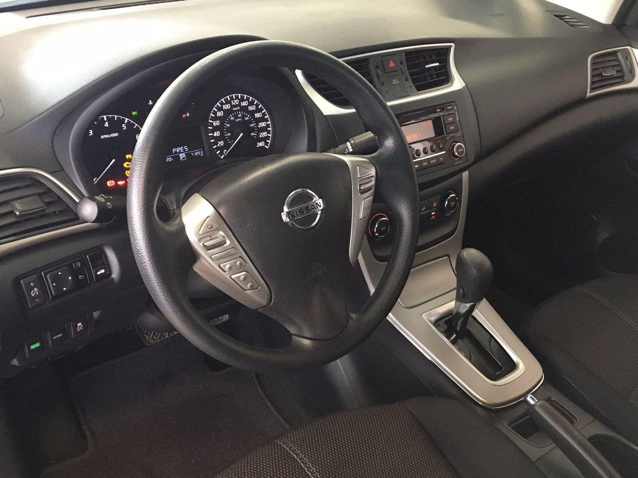 Nissan Sentra S 2015Régulateur de vitesse, Essuie-glaces intermittents, Anti-démarreur, Freins ABS, Contrôle de stabilité, Coussins gonflables latéraux, Lecteur CD, Lecteur MP3, Portes électriques, Vitres électriques, Air climatisé, Volant ajustable, Tapis protecteurs, Ordinateur de bord, Radio AM/FM, Rétroviseur électrique, Direction assistée, Télédéverrouillage, Rétroviseurs chauffants, Coussins gonflables arrière pour la tête, Démarrage sans clé, Rétroviseurs électriques, Antipatinage, Verrous de sécurité pour enfants, Système de surveillance de la pression des pneus, Sièges baquets, Prise Auxiliaire, Technologie Bluetooth intégrée, Port USB