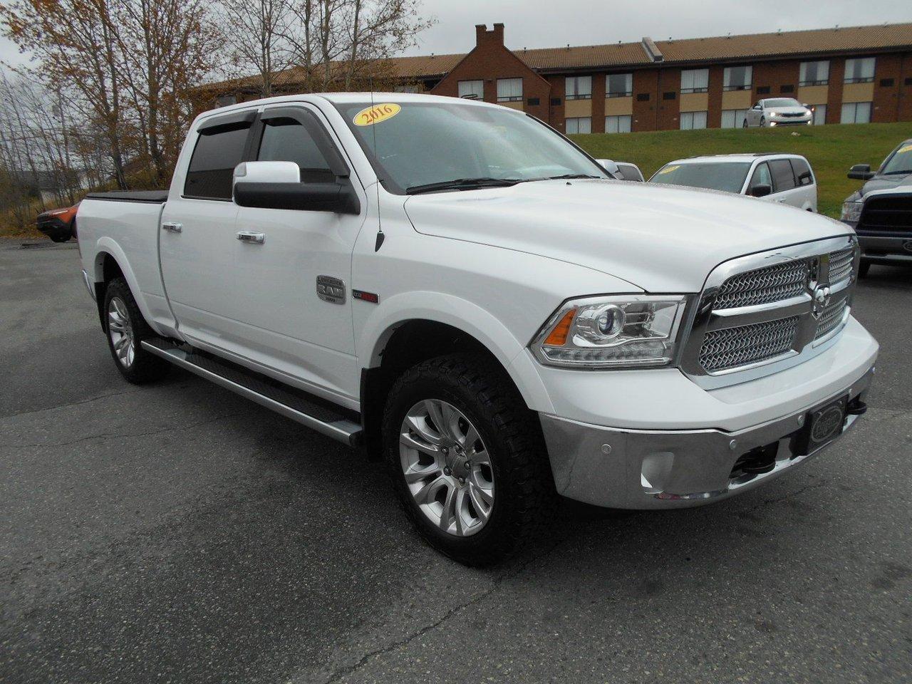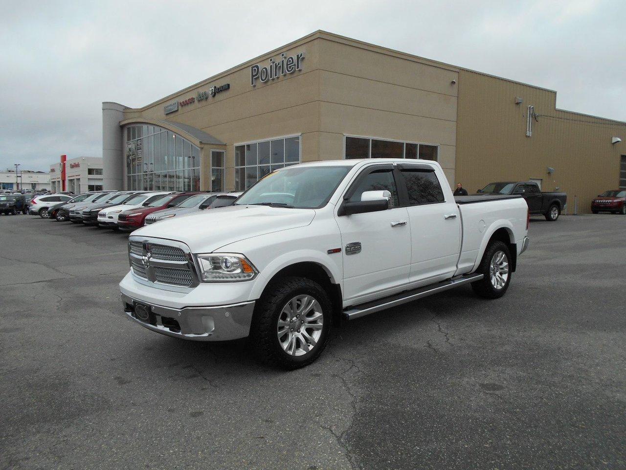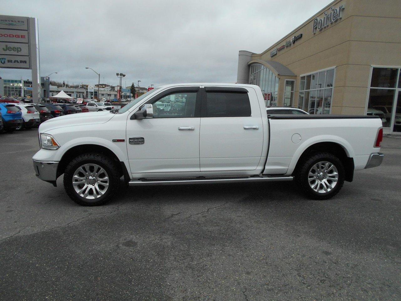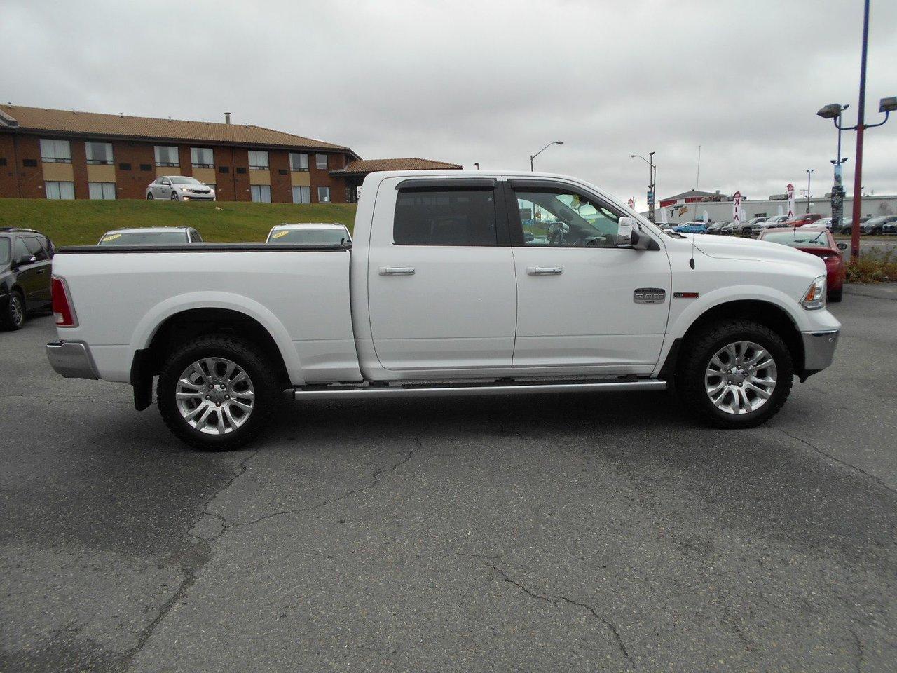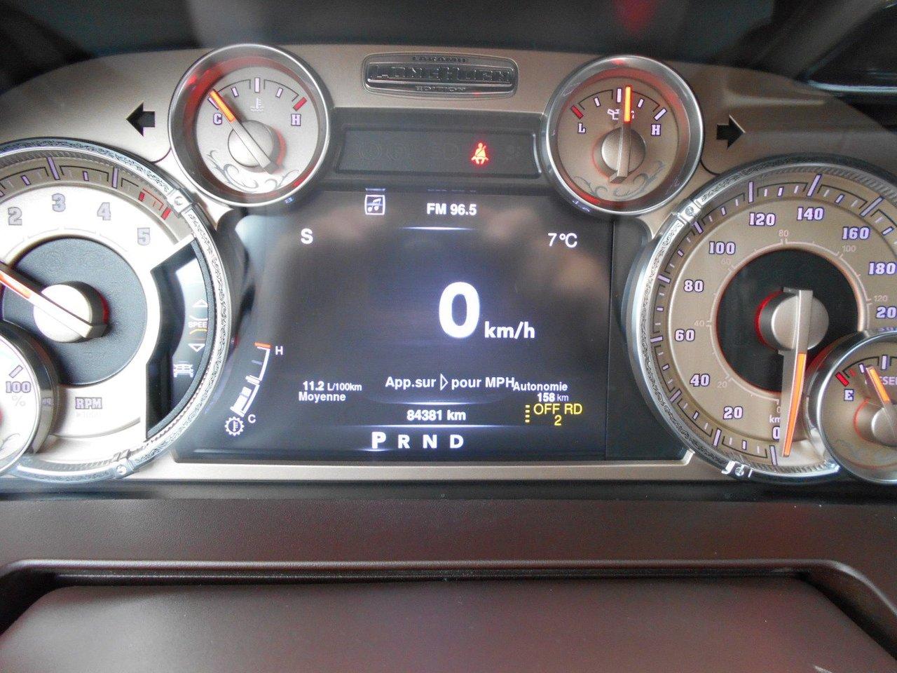 RAM 1500 Longhorn LUXE AVEC ?CONOMIE 2016Régulateur de vitesse, Toit ouvrant, Essuie-glaces intermittents, Anti-démarreur, Freins ABS, Contrôle de stabilité, Coussin gonflable conducteur, Coussins gonflables latéraux, Démarreur à distance, Lecteur MP3, 6 Haut-parleurs, 8 Haut-parleurs, Portes électriques, Tachymètre, Vitres électriques, Air climatisé, Intérieur en cuir, Climatisation deux zones, Commandes audio au volant, Sièges arrières rabattables, Sièges chauffants, Siège mémoire, Volant ajustable, Marchepieds, Tapis protecteurs, Vitres teintées, Doublure de caisse, Attelage remorque, Phares haute intensité, Ordinateur de bord, Tout équipé, Caméra de recul, Radio AM/FM, Pédales ajustables, Rétroviseurs, Volant gainé de cuir, Phares automatiques, Rétroviseur électrique, Sièges arrières chauffants, Direction assistée, Télédéverrouillage, Rétroviseurs chauffants, Banquette arrière divisé, Siège à réglage électrique, Système d\'alarme, Coussins gonflables arrière pour la tête, Siège conducteur - soutien lombaire, Siège passager - soutien lombaire, Siège refroidissant, Essuie-glace détecteur de pluie, Démarrage sans clé, Freins à disque, Sièges chauffants - Avant, Rétroviseurs électriques, Jantes en alliage, Antipatinage, Phares antibrouillards, Verrous de sécurité pour enfants, Système de surveillance de la pression des pneus, Sièges baquets, Prise Auxiliaire, Technologie Bluetooth intégrée, Port USB, Climatiseur automatique, Aide au stationnement (capteurs), Roue de secours - Temporaire, Rétroviseur à atténuation automatique, Aluminium, Climatisation, Volant chauffant