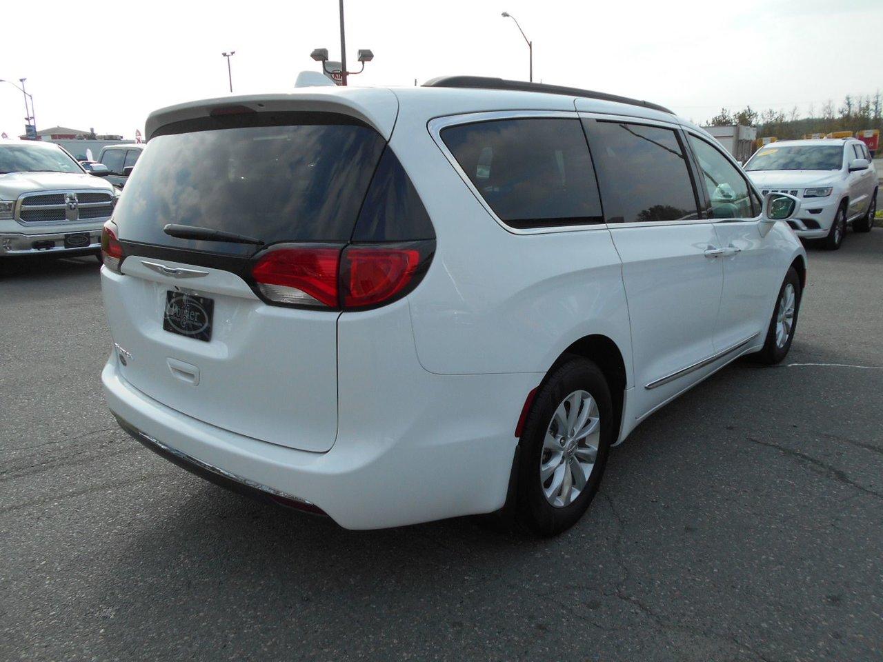 Chrysler Pacifica Touring 2017Régulateur de vitesse, Essuie-glaces intermittents, Essuie-glace arrière, Anti-démarreur, Freins ABS, Contrôle de stabilité, Coussin gonflable conducteur, Démarreur à distance, Chauffe-moteur, 6 Haut-parleurs, Miroirs chauffants, Portes électriques, Sièges électriques, Tachymètre, Téléphone cellulaire, Vitres électriques, Air climatisé, Intérieur en cuir, Banquette de troisième rangée, Chauffage arrière, Climatisation deux zones, Commandes audio au volant, Sièges arrières rabattables, Sièges chauffants, Volant ajustable, Deux portes coulissantes, Tapis protecteurs, Vitres teintées, Radio satellite, Ordinateur de bord, Tout équipé, Caméra de recul, Horloge, Radio AM/FM, Rétroviseurs, Direction assistée, Télédéverrouillage, Rétroviseurs chauffants, Banquette arrière divisé, Siège à réglage électrique, Système d\'alarme, Démarrage sans clé, Rétroviseurs électriques, Jantes en alliage, Antipatinage, Phares antibrouillards, Coussins gonflables, Support à bagages, Verrous de sécurité pour enfants, Système de surveillance de la pression des pneus, Dégivreur de lunette arrière, Miroirs ajustables de l\'intérieur, Prise Auxiliaire, Points d\'ancrage pour sièges d\'enfant, Technologie Bluetooth intégrée, Port USB, Climatiseur automatique, Pare-chocs de couleur assortie