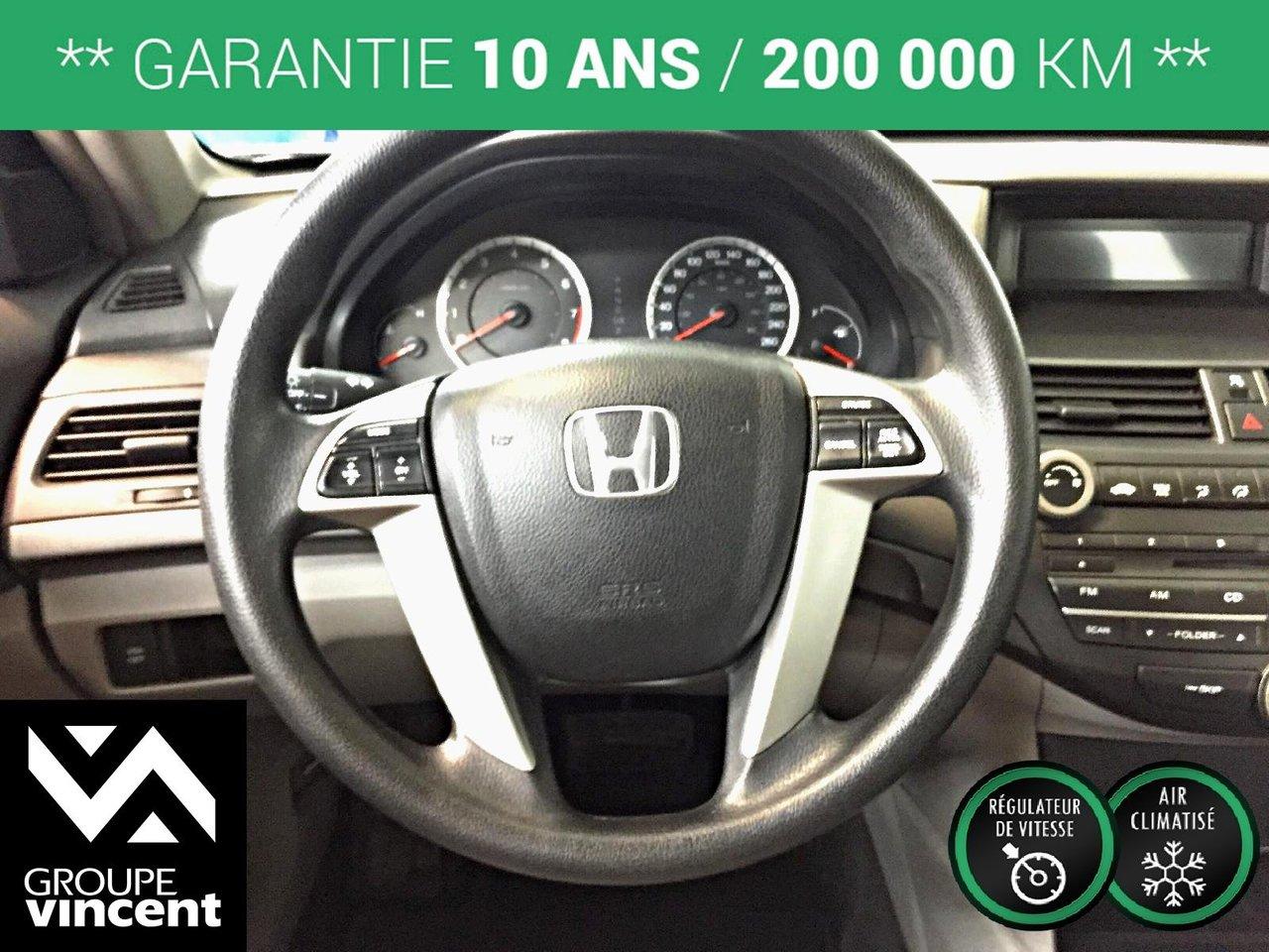 Honda Accord LX *** Climatiseur *** La fiabilit? avant tout ! 2008Régulateur de vitesse, Essuie-glaces intermittents, Anti-démarreur, Freins ABS, Contrôle de stabilité, Coussin gonflable conducteur, Coussins gonflables latéraux, Lecteur CD, Lecteur MP3, 6 Haut-parleurs, Portes électriques, Tachymètre, Vitres électriques, Air climatisé, Commandes audio au volant, Lampes de lecture arrière, Volant ajustable, Enjoliveurs, Tapis protecteurs, Vitres teintées, Radio AM/FM, Phares automatiques, Rétroviseur électrique, Direction assistée, Télédéverrouillage, Rétroviseurs chauffants, Système d\'alarme, Sièges tissu, Freins à disque, Rétroviseurs électriques, Jantes en alliage, Antipatinage, Verrous de sécurité pour enfants, Système de surveillance de la pression des pneus, Sièges baquets, Prise Auxiliaire, Climatisation