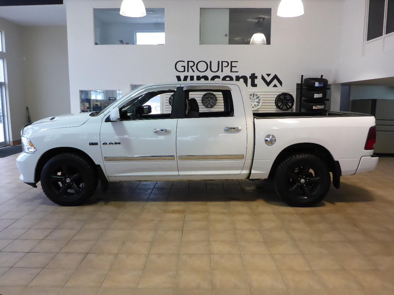 Dodge RAM 1500 SPORT 4X4**GARANTIE 10 ANS** Parfait pour le travail et les loisirs ! 2010Régulateur de vitesse, Essuie-glaces intermittents, Anti-démarreur, Freins ABS, Contrôle de stabilité, Coussin gonflable conducteur, Coussins gonflables latéraux, Lecteur CD, Lecteur MP3, 6 Haut-parleurs, Portes électriques, Tachymètre, Vitres électriques, Air climatisé, Intérieur en cuir, Sièges chauffants, Volant ajustable, Marchepieds, Ordinateur de bord, Radio AM/FM, Phares automatiques, Rétroviseur électrique, Direction assistée, Télédéverrouillage, Rétroviseurs chauffants, Siège à réglage électrique, Système d\'alarme, Coussins gonflables arrière pour la tête, Freins à disque, Rétroviseurs électriques, Jantes en alliage, Antipatinage, Phares antibrouillards, Système de surveillance de la pression des pneus, Roue de secours - Temporaire, Climatisation