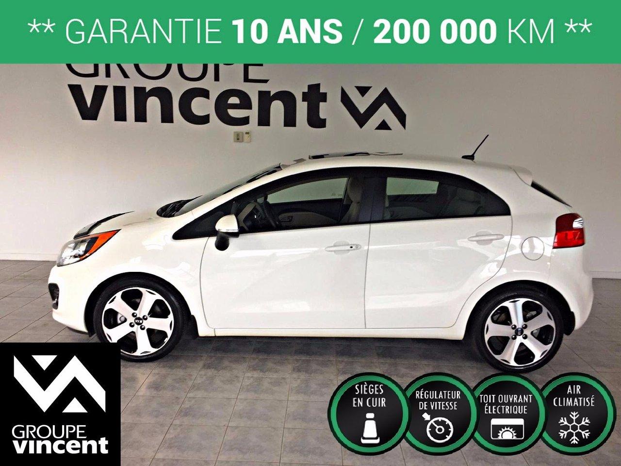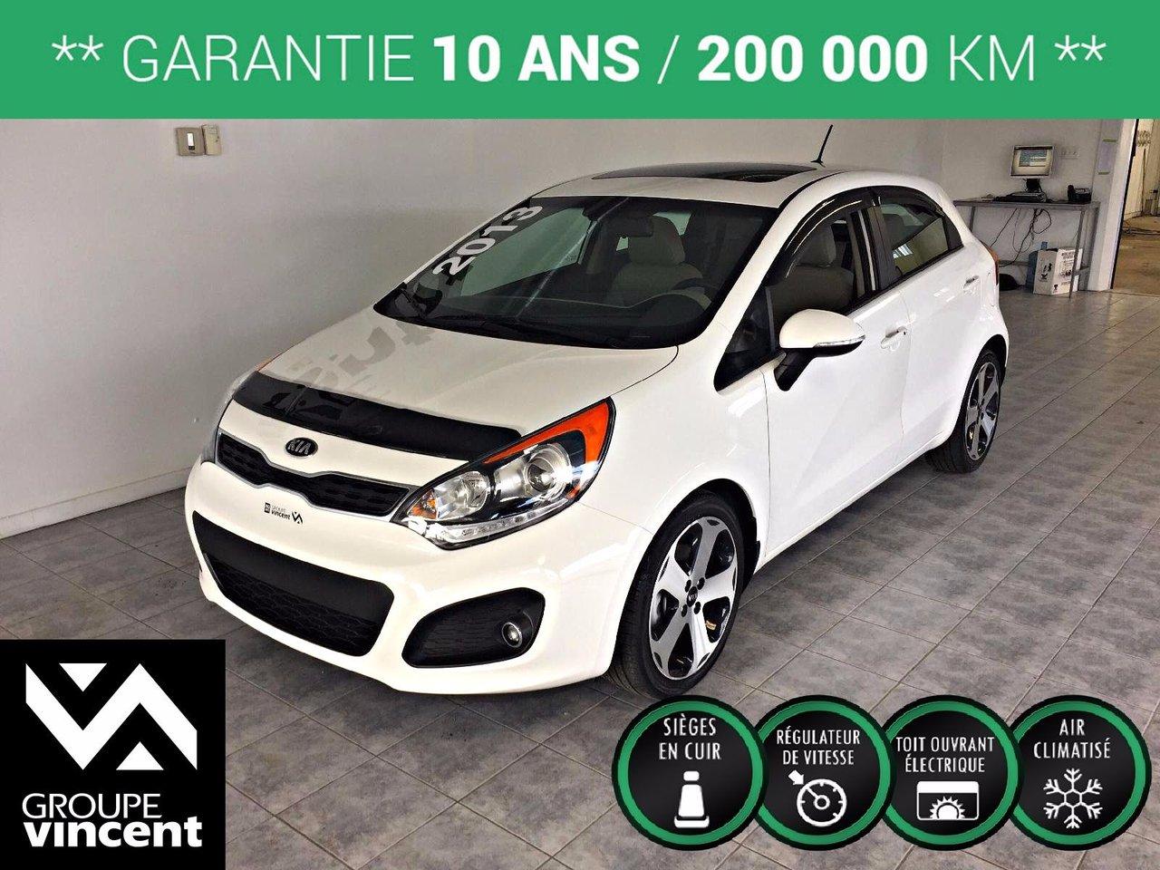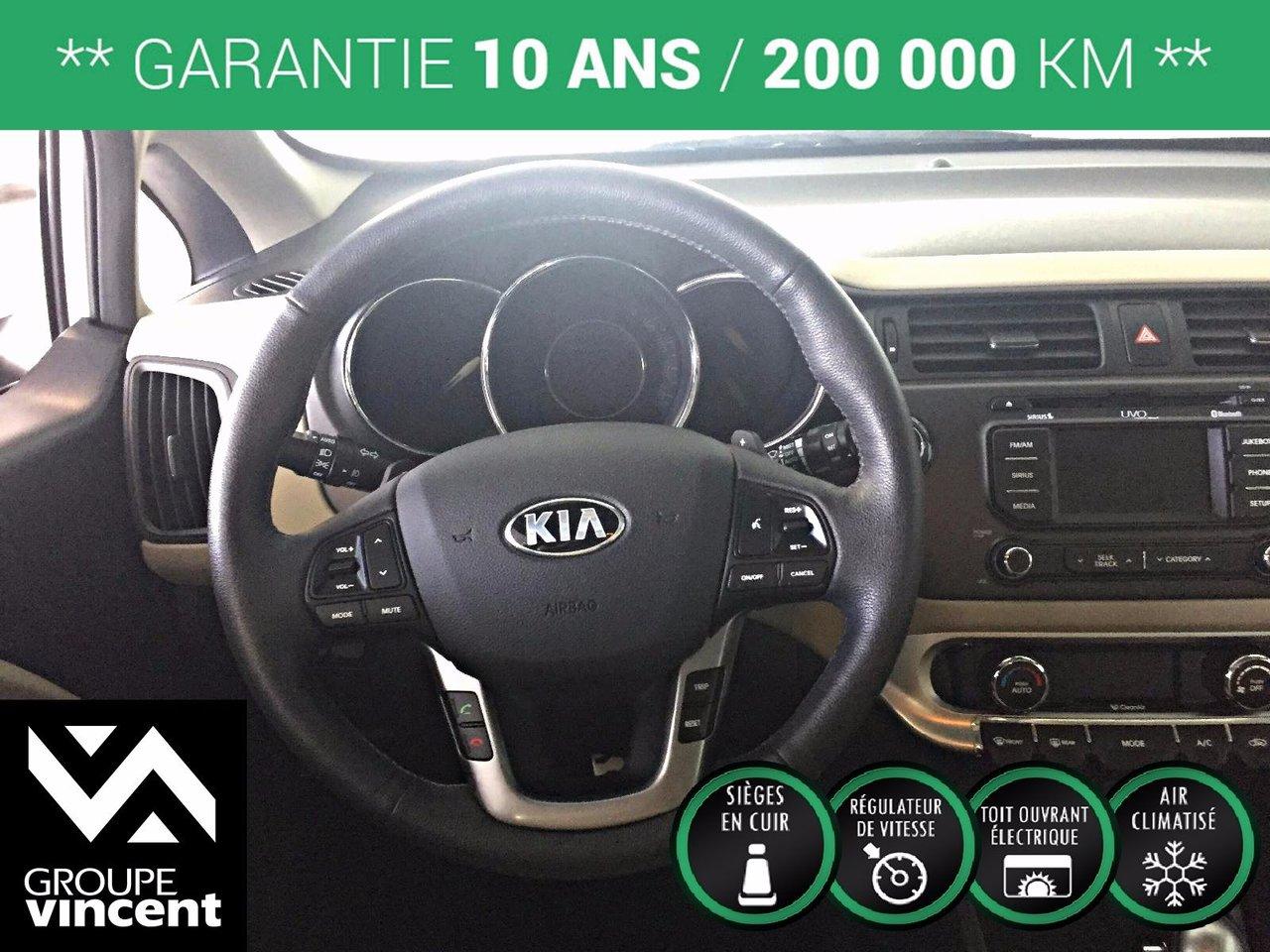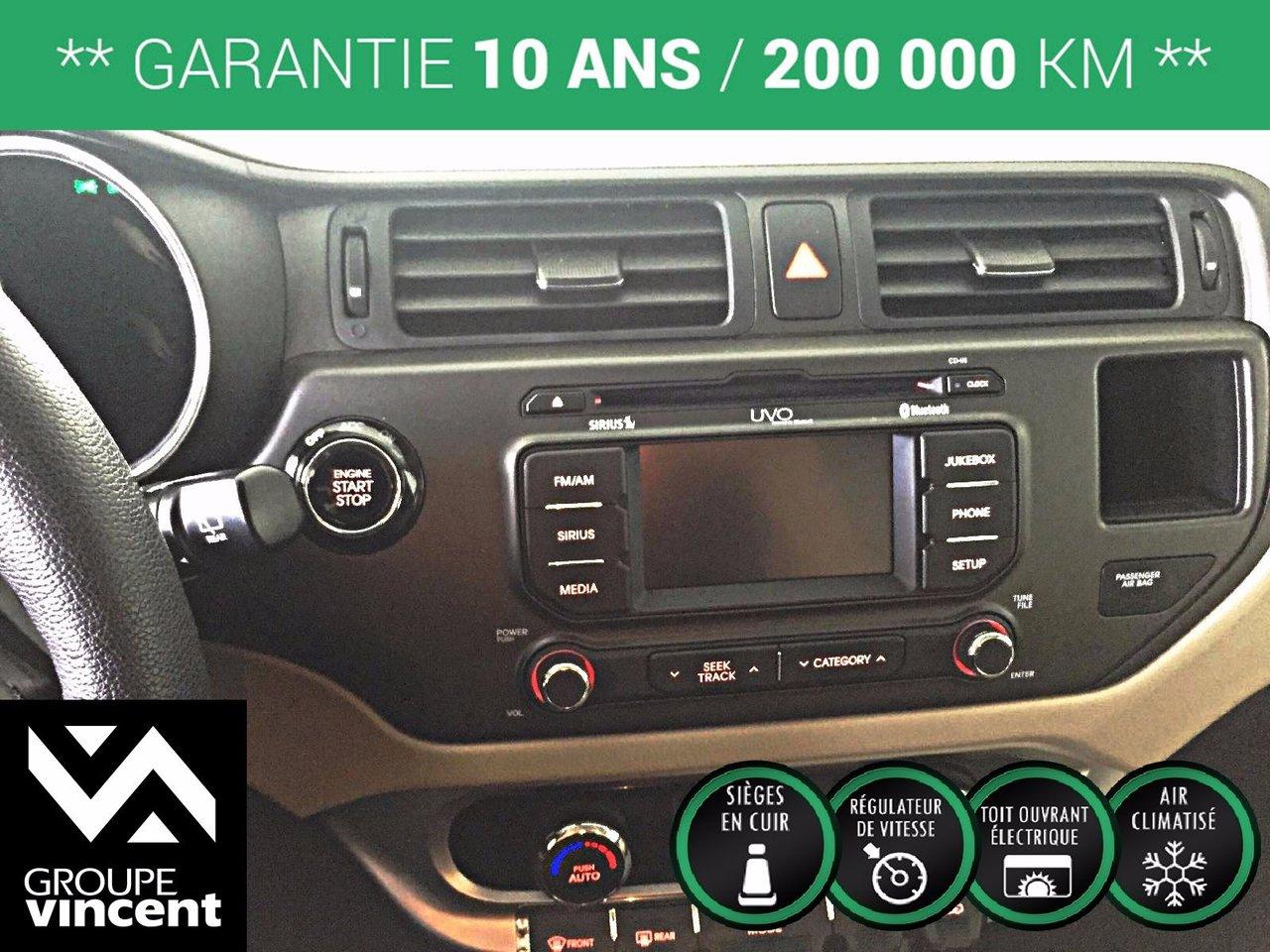 Kia Rio SX Tr?s bien ?quip?e! 2013Régulateur de vitesse, Toit ouvrant, Essuie-glaces intermittents, Essuie-glace arrière, Anti-démarreur, Freins ABS, Contrôle de stabilité, Coussin gonflable conducteur, Coussins gonflables latéraux, Lecteur CD, Lecteur MP3, 6 Haut-parleurs, Portes électriques, Tachymètre, Vitres électriques, Air climatisé, Commandes audio au volant, Lampes de lecture arrière, Sièges arrières rabattables, Sièges chauffants, Volant ajustable, Moonroof, Tapis protecteurs, Ordinateur de bord, Caméra de recul, Radio AM/FM, Protège-capot, Rétroviseurs, Volant gainé de cuir, Phares automatiques, Rétroviseur électrique, Direction assistée, Télédéverrouillage, Rétroviseurs chauffants, Banquette arrière divisé, Système d\'alarme, Coussins gonflables arrière pour la tête, Démarrage sans clé, Freins à disque, Sièges chauffants - Avant, Rétroviseurs électriques, Jantes en alliage, Antipatinage, Phares antibrouillards, Sièges baquets, Prise Auxiliaire, Technologie Bluetooth intégrée, Port USB, Aluminium, Climatisation