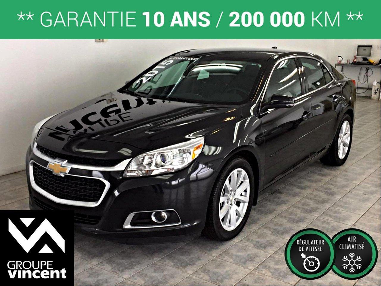 Chevrolet Malibu LT **GPS+GARANTIE 10 ANS** Le grand confort et luxe! 2015Régulateur de vitesse, Essuie-glaces intermittents, Anti-démarreur, Freins ABS, Contrôle de stabilité, Coussin gonflable conducteur, Coussins gonflables latéraux, Démarreur à distance, Lecteur CD, Lecteur MP3, 8 Haut-parleurs, Sièges électriques, Tachymètre, Vitres électriques, Air climatisé, Intérieur en cuir, Climatisation deux zones, Commandes audio au volant, Sièges arrières rabattables, Volant ajustable, Tapis protecteurs, Attelage remorque, Phares haute intensité, Ordinateur de bord, Caméra de recul, Radio AM/FM, Rétroviseurs, Volant gainé de cuir, Phares automatiques, Rétroviseur électrique, Direction assistée, Télédéverrouillage, Rétroviseurs chauffants, Banquette arrière divisé, Siège à réglage électrique, Système d\'alarme, Coussins gonflables arrière pour la tête, Siège conducteur - soutien lombaire, Freins à disque, Rétroviseurs électriques, Jantes en alliage, Antipatinage, Phares antibrouillards, Système de surveillance de la pression des pneus, Sièges baquets, Prise Auxiliaire, Technologie Bluetooth intégrée, Port USB, Climatiseur automatique, Entreposage Média sur disque dur, Aluminium, Climatisation