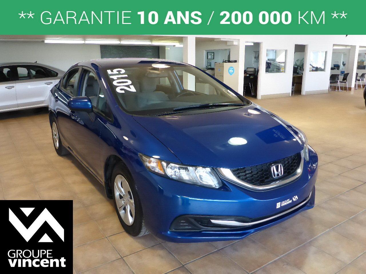 Honda Civic LX**Si?ges chauffants** Fiable et ?conomique ! 2015Régulateur de vitesse, Essuie-glaces intermittents, Anti-démarreur, Freins ABS, Contrôle de stabilité, Coussin gonflable conducteur, Coussins gonflables latéraux, Lecteur CD, Lecteur MP3, 6 Haut-parleurs, Portes électriques, Tachymètre, Vitres électriques, Air climatisé, Commandes audio au volant, Sièges arrières rabattables, Sièges chauffants, Volant ajustable, Tapis protecteurs, Ordinateur de bord, Caméra de recul, Radio AM/FM, Phares automatiques, Rétroviseur électrique, Direction assistée, Rétroviseurs chauffants, Banquette arrière divisé, Coussins gonflables arrière pour la tête, Sièges tissu, Freins à disque, Sièges chauffants - Avant, Rétroviseurs électriques, Antipatinage, Verrous de sécurité pour enfants, Sièges baquets, Prise Auxiliaire, Technologie Bluetooth intégrée, Port USB, Climatisation