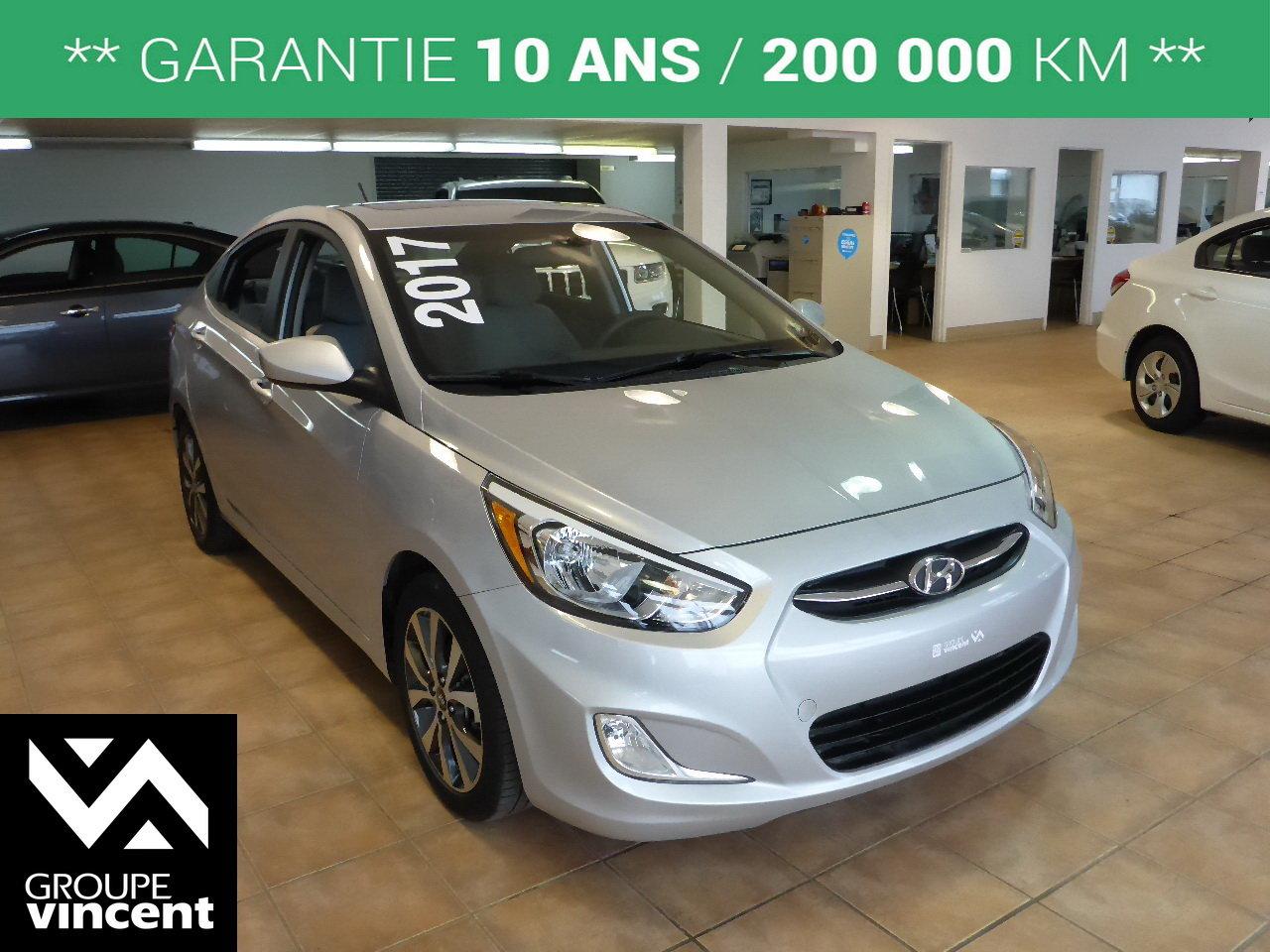 Hyundai Accent GLS**TOIT / MAGS** Fiable et ?conomique ! 2017Régulateur de vitesse, Toit ouvrant, Essuie-glaces intermittents, Anti-démarreur, Freins ABS, Contrôle de stabilité, Coussin gonflable conducteur, Coussins gonflables latéraux, Lecteur CD, Lecteur MP3, 6 Haut-parleurs, Portes électriques, Tachymètre, Vitres électriques, Air climatisé, Commandes audio au volant, Volant ajustable, Tapis protecteurs, Phares haute intensité, Ordinateur de bord, Radio AM/FM, Phares automatiques, Direction assistée, Rétroviseurs chauffants, Coussins gonflables arrière pour la tête, Sièges tissu, Freins à disque, Rétroviseurs électriques, Jantes en alliage, Antipatinage, Phares antibrouillards, Verrous de sécurité pour enfants, Sièges baquets, Prise Auxiliaire, Port USB