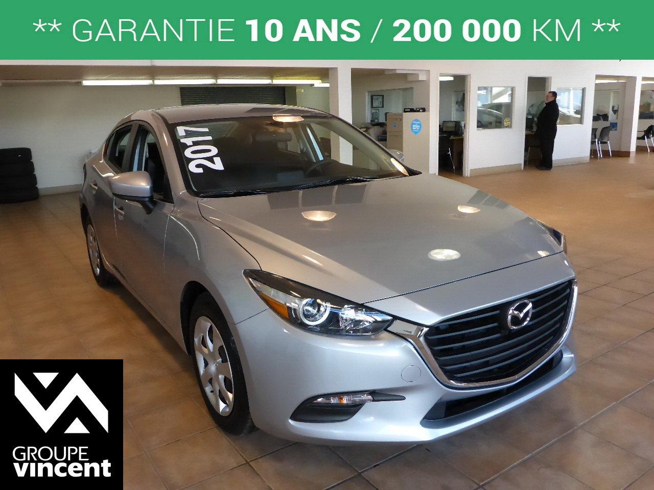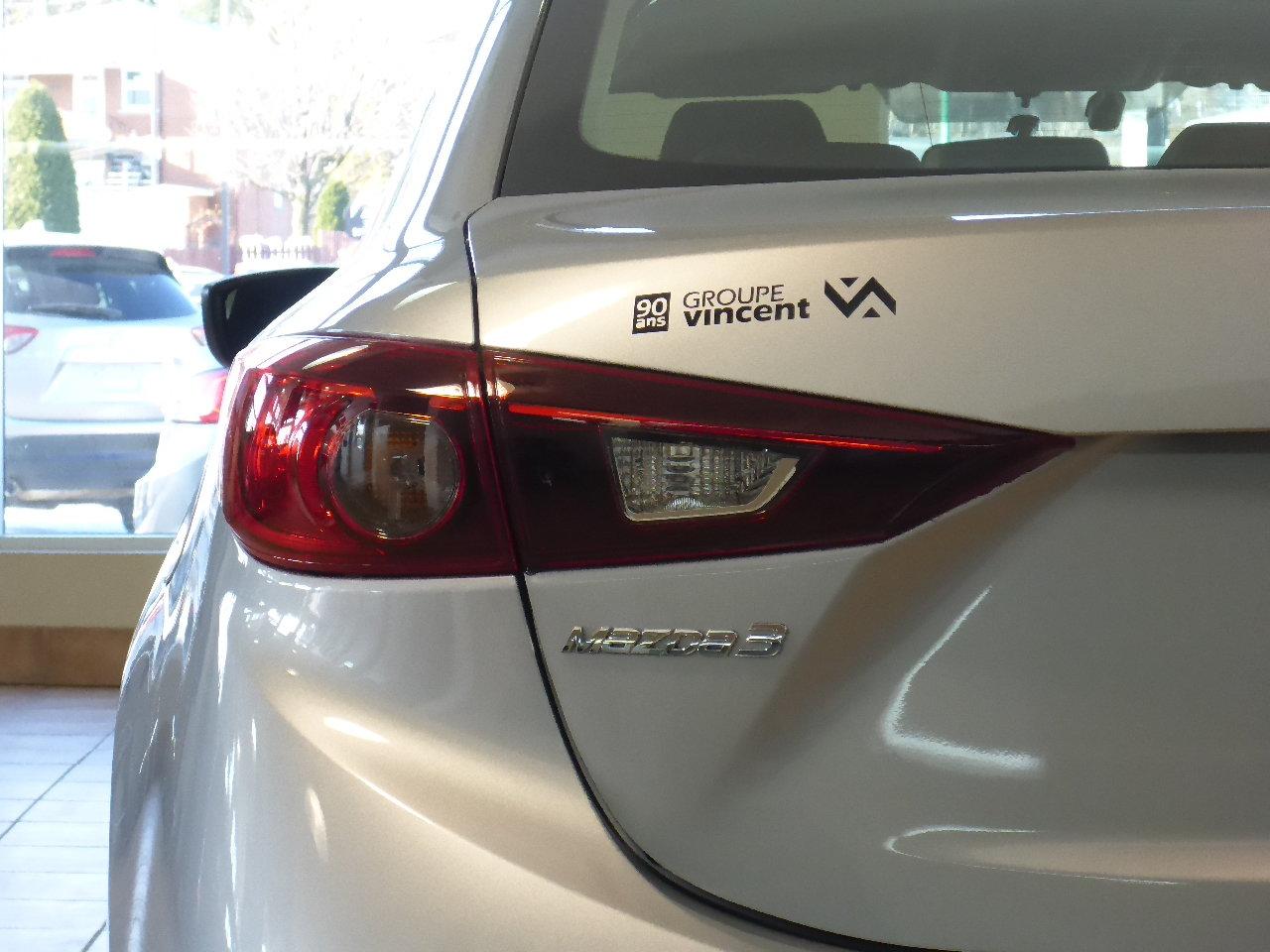 Mazda 3 GX**CLIMATISEUR** Bas kilom?trage ! 2017Régulateur de vitesse, Essuie-glaces intermittents, Anti-démarreur, Freins ABS, Contrôle de stabilité, Coussin gonflable conducteur, Coussins gonflables latéraux, Lecteur CD, Lecteur MP3, 6 Haut-parleurs, Portes électriques, Tachymètre, Vitres électriques, Air climatisé, Commandes audio au volant, Sièges arrières rabattables, Volant ajustable, Enjoliveurs, Tapis protecteurs, Ordinateur de bord, Caméra de recul, Radio AM/FM, Phares automatiques, Rétroviseur électrique, Direction assistée, Télédéverrouillage, Rétroviseurs chauffants, Banquette arrière divisé, Système d\'alarme, Coussins gonflables arrière pour la tête, Sièges tissu, Démarrage sans clé, Freins à disque, Rétroviseurs électriques, Antipatinage, Verrous de sécurité pour enfants, Système de surveillance de la pression des pneus, Sièges baquets, Prise Auxiliaire, Port USB