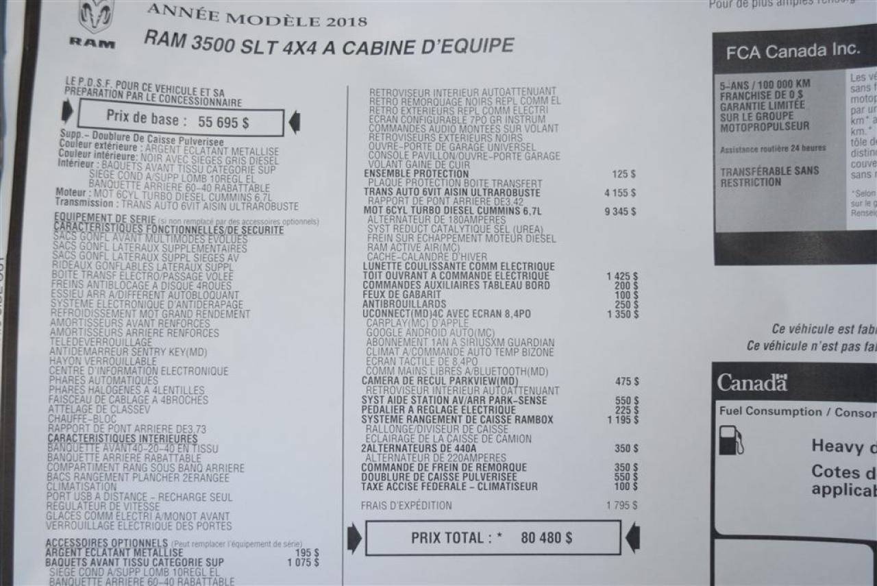 Ensemble protection, 6 cylindres Turbo diésel, 6.7 litres, Lunette coulissante, toit ouvrant, feux de gabarit, fogs, Bluetooth, caméra de recul, aide au stationnement, pédalier électrique, système de rangement RamBOX, véhicule Garantie par le fabricant Auto, à vendre Chez Élite Chrysler Jeep Dodge Ram, le plus grand choix en inventaire. À Sherbrooke en Estrie Possibilité de Livraison partout au Québec !!!!!! Pour plus de détails, pour un essai routier ou même l'achat, Communiquer avec l'un de nos conseillers en vente sans frais au 1-888-647-5468. Financement sur place. (1ère et 2ième Chance)