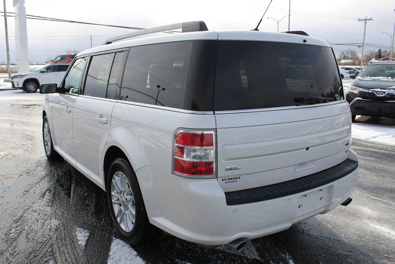 Ford Flex Sel Awd 7passagers Bluetooth Cuir Toit Sièges 2013\n\nRégulateur de vitesse, Essuie-glaces intermittents, Essuie-glace arrière, Anti-démarreur, Freins ABS, Contrôle de stabilité, Coussin gonflable conducteur, Coussins gonflables latéraux, Lecteur CD, Lecteur MP3, 8 Haut-parleurs, Portes électriques, Tachymètre, Vitres électriques, Air climatisé, Intérieur en cuir, Climatisation deux zones, Commandes audio au volant, Lampes de lecture arrière, Sièges arrières rabattables, Sièges chauffants, Volant ajustable, Tapis protecteurs, Vitres teintées, Ordinateur de bord, Caméra de recul, Radio AM/FM, Volant gainé de cuir, Phares automatiques, Rétroviseur électrique, Direction assistée, Télédéverrouillage, Sièges de troisième rangée, Rétroviseurs chauffants, Banquette arrière divisé, Siège à réglage électrique, Coussins gonflables arrière pour la tête, Siège conducteur - soutien lombaire, Siège passager - soutien lombaire, Freins à disque, Rétroviseurs électriques, Jantes en alliage, Antipatinage, Phares antibrouillards, Verrous de sécurité pour enfants, Système de surveillance de la pression des pneus, Sièges baquets, Prise Auxiliaire, Technologie Bluetooth intégrée, Port USB, Climatiseur automatique, Rétroviseur à atténuation automatique, Aluminium, Climatisation\n\nFORD FLEX SEL AWD 7 PASSAGERS V6 3.5L SIÈGES CHAUFFANTS EN CUIR, SIÈGES A RÉGLAGE ÉLECTRIQUE, TOIT OUVRANT PANORAMIQUE, RADIO SATELLITE SIRIUS, BLUETOOTH, CONTROLES AUDIO AU VOLANT, GROUPE ÉLECTRIQUE, CLIMATISEUR, RÉGULATEUR DE VITESSE, MIROIRS CHAUFFANT, CAMÉRA DE RECUL. JAMAIS ACCIDENTÉ, FICHE D'ENTRETIEN COMPLÈTE. INSPECTION AVEC RAPPORT DE CONDITION POUR TOUT NOS VÉHICULES USAGÉS. CARPROOF ACCESSIBLE DIRECTEMENT VIA NOS ANNONCES. GARANTIE PROLONGÉE DISPONIBLE. LA MEILLEUR ALLOCATION POUR VOTRE ÉCHANGE. TOUTES LES MARQUES DISPONIBLES. ÉCONOMISEZ PLUS AVEC ST-BASILE TOYOTA, VOTRE CONCESSIONAIRE DE LA RIVE-SUD DE MONTRÉAL. FINANCEMENT FACILE ET CRÉDIT SUR PLACE. 2e CHANCE AU CRÉDIT DISPONIBLE. SITUÉ EN ABORD DE LA ROUTE 116, ENTRE BELOEIL ET ST-BRUNO, VENEZ NOUS VOIR OU VISITEZ LE: WWW.STBASILETOYOTA.COM