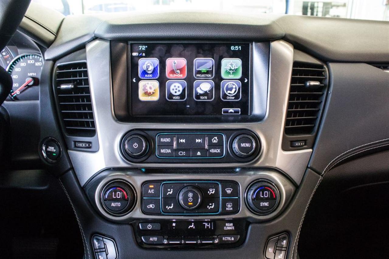 AUSSI EQUIPER QU'UN PREMIER-- JAMAIS ACCIDENTE -- BAS KILOMETRAGE -- CAPACITE DE 7 PASSAGERS -- SYSTEME DE SON BOSE -- TOIT OUVRANT -- SYSTEME DE NAVIGATION ( GPS ) -- CAMERA DE RECUL -- SYSTEME D'ASSISTANCE AU STATIONNEMENT / CAPTEUR DE MOUVEMENT -- SYSTEME D'AVERTISSEMENT DE CHANGEMENT DE LIGNE -- AFFICHAGE TETE HAUTE -- SYSTEME MAIN LIBRE ( BLUETOOTH ) + USB, AUXILIAIRE -- LECTEUR DVD -- SIEGES CHAUFFANTS EN CUIR AVANT / ARRIERE -- SIEGES ELECTRIQUES REGLABLES EN 3 POINTS AVEC 2 MEMOIRES -- VOLANT CHAUFFANT -- AIR CLIMATISE ( A/C ) -- REGULATION DE TEMPERATURE PAR ZONE AVANT / ARRIERE -- VITRES ELECTRIQUES -- MIROIRS ELECTRIQUES -- REGULATEUR DE VITESSE -- MOTEUR V8 5.3L -- MAG 22 -- 4X4 / AWD -- FINANCEMENT DISPONIBLE *** OUVERT DU LUNDI AU SAMEDI *** ***Frais de 399$ s'applique*** *** Le prix indiqué est conditionnel au financement, minimum 6 mois *** -- ACCIDENT FREE -- LOW MILEAGE -- 7 PASSAGERS CAPACITY -- BOSE SOUND SYSTEM -- SUNROOF -- NAVIGATION SYSTEM ( GPS ) -- BACK UP CAMERA -- PARKING ASSISTANCE SYSTEM / MOVEMENT SENSOR -- LANE DEPARTURE WARING SYSTEM -- HEADS UP DISPLAY -- SYSTEM HANDS FREE ( BLUETOOTH) + USB AND AUXILIARY -- DVD PLAYER -- LEATHER HEATING SEATS FRONT / REAR -- ELECTRIC SEATS AJUSTABLE IN 3 WAYS WITH 2 MEMORIES -- HEATED STEERING WHEEL -- AIR CONDITIONING ( A/C ) -- TEMPERATURE REGULATION BY AREA FRONT / REAR -- ELECTRIC WINDOWS -- ELECTRIC MIRRORS -- CRUISE CONTROL -- V8 5.3L ENGINE -- MAG 22'' -- 4X4 / AWD -- FINANCING AVAILABLE *** OPEN MONDAY TO SATURDAY *** ***Fees of 399$ apply*** *** The price indicated is conditional on the financing, minimum 6 months *** * Nous avons le plus grand inventaire Hyundai d'occasion en Montérégie. Nous sommes ouverts du Lundi au Vendredi de 9h a 21H et le Samedi de 10h a 16h. We have the largest used Hyundai inventory in Montérégie. We are open from Monday to Friday from 9am to 9pm and Saturday from 10am to 4pm.