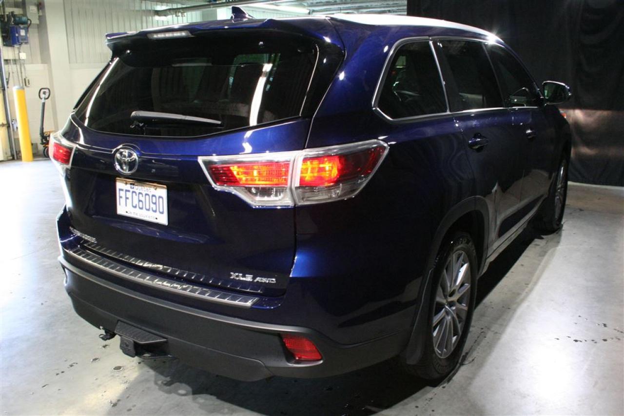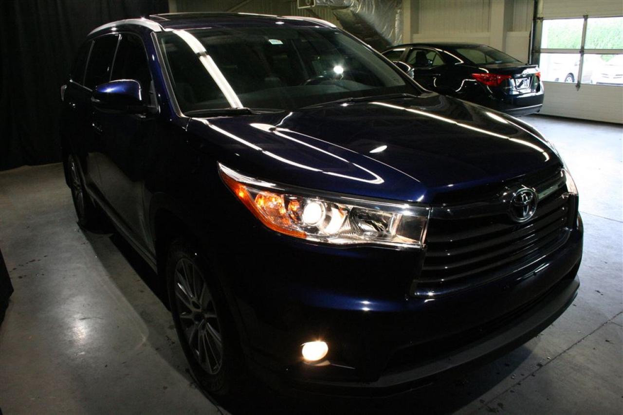 MAGNIFIQUE HIGHLANDER XLE V6 AWD 2015 :COULEUR EXTÉRIEUR BLEU NAUTIQUE ( RARE SUR LE MARCHÉ) AVEC SEULEMENT 44 921 KM,TOUT ÉQUIPÉ + INTÉRIEUR CUIR + SYS.DE NAVIGATION + TOIT OUVRANT + DÉMARREUR A DISTANCE + ATTACHE REMORQUE D'ORIGINE TOYOTA (VALEUR DE 950$+Tx.). UN SEUL PROPRIÉTAIRE,JAMAIS ACCIDENTÉ ET BAS KILOMÉTRAGE CERTIFIÉ.BALANCE DE GARANTIE COMPLÈTE DE TOYOTA JUSQU'AU 28 JUILLET 2018 OU 60 000KM ET BALANCE DE GARANTIE TOYOTA SUR LE GROUPE MOTOPROPULSEUR JUSQU'AU 28 JUILLET 2020 OU 100 000KM TRANSFÉRABLE SANS FRAIS. TOUS NOS VÉHICULES SONT SOIGNEUSEMENT INSPECTÉS ET RECONDITIONNÉS SELON LES NORMES RIGOUREUSES DE TOYOTA.FINANCEMENT DISPONIBLE SUR PLACE À DES TAUX TRÈS AVANTAGEUX.CHEZ TOYOTA ST-EUSTACHE NOUS VOUS OFFRONS DES VÉHICULES D'OCCASION CERTIFIÉS AU MEILLEUR RAPPORT ''QUALITÉ/PRIX''.