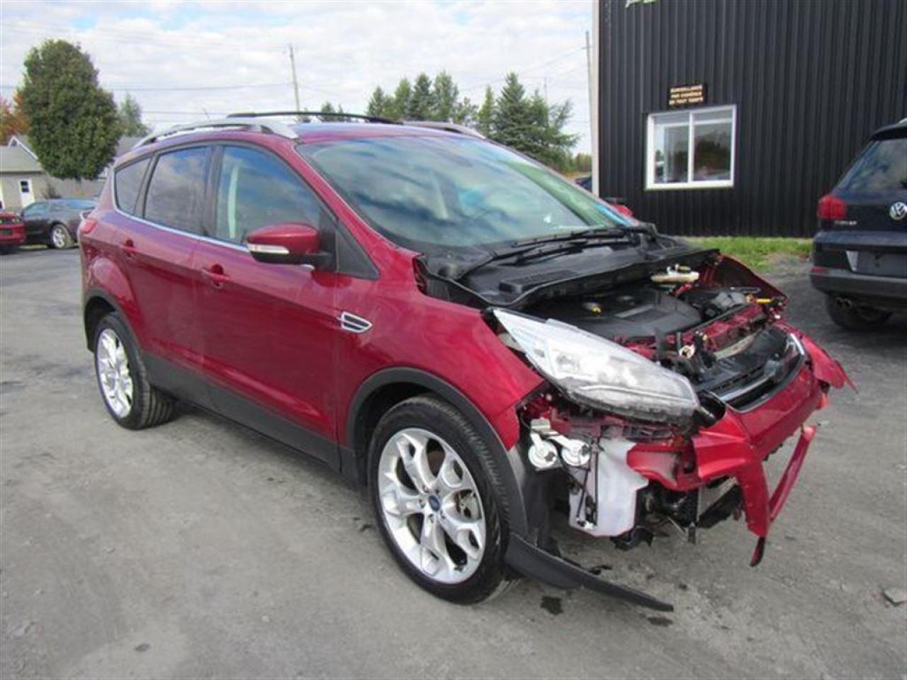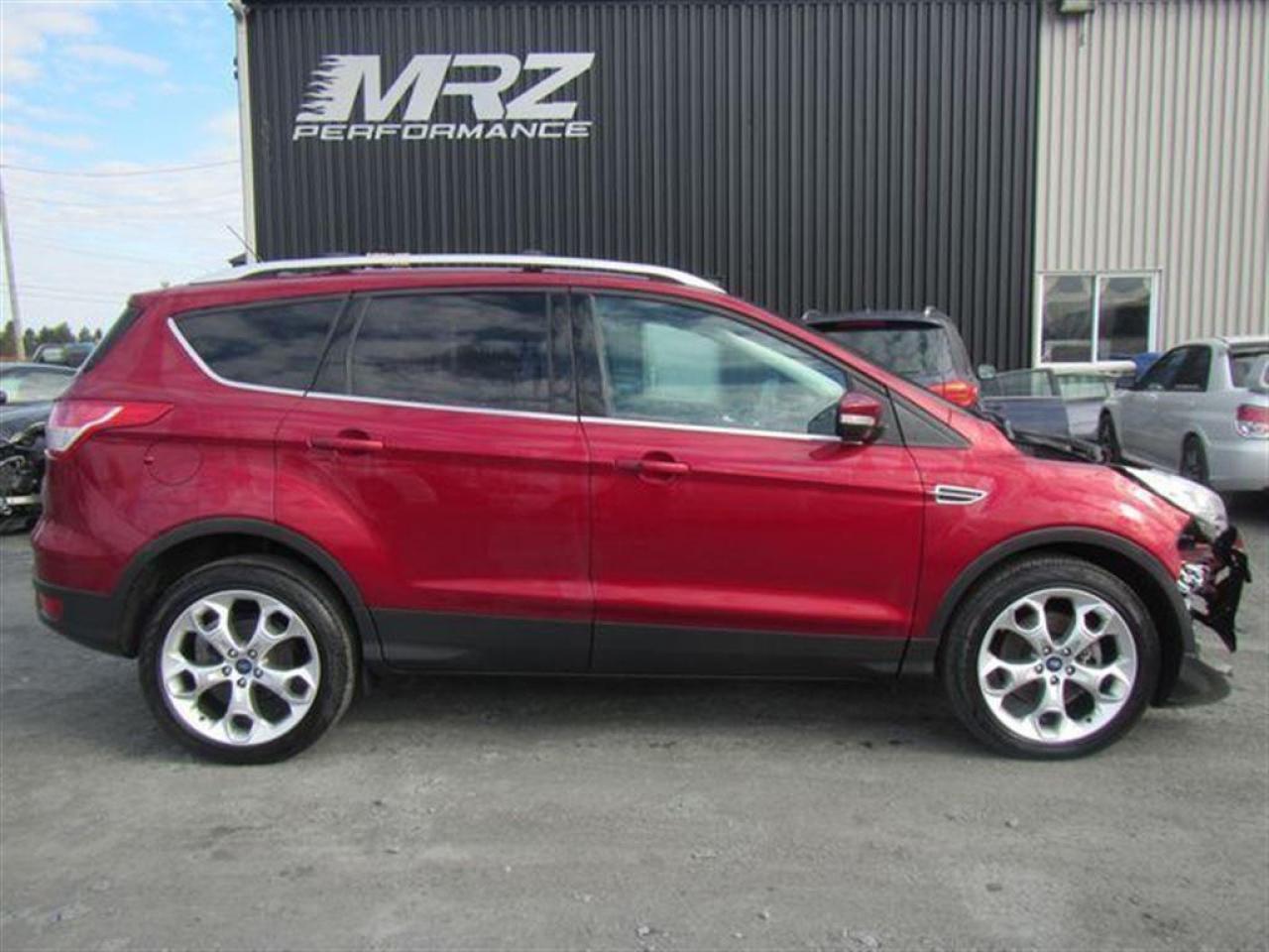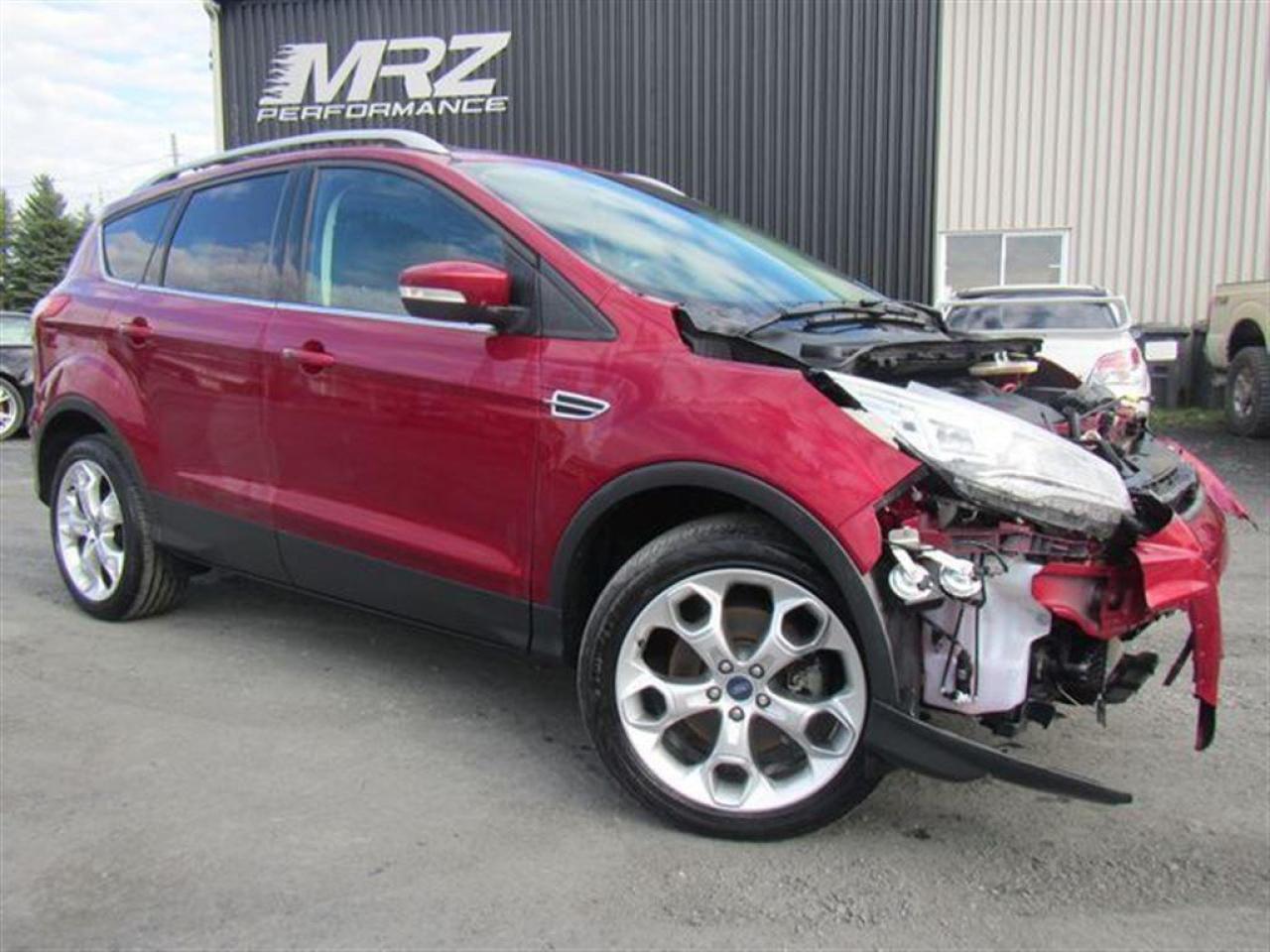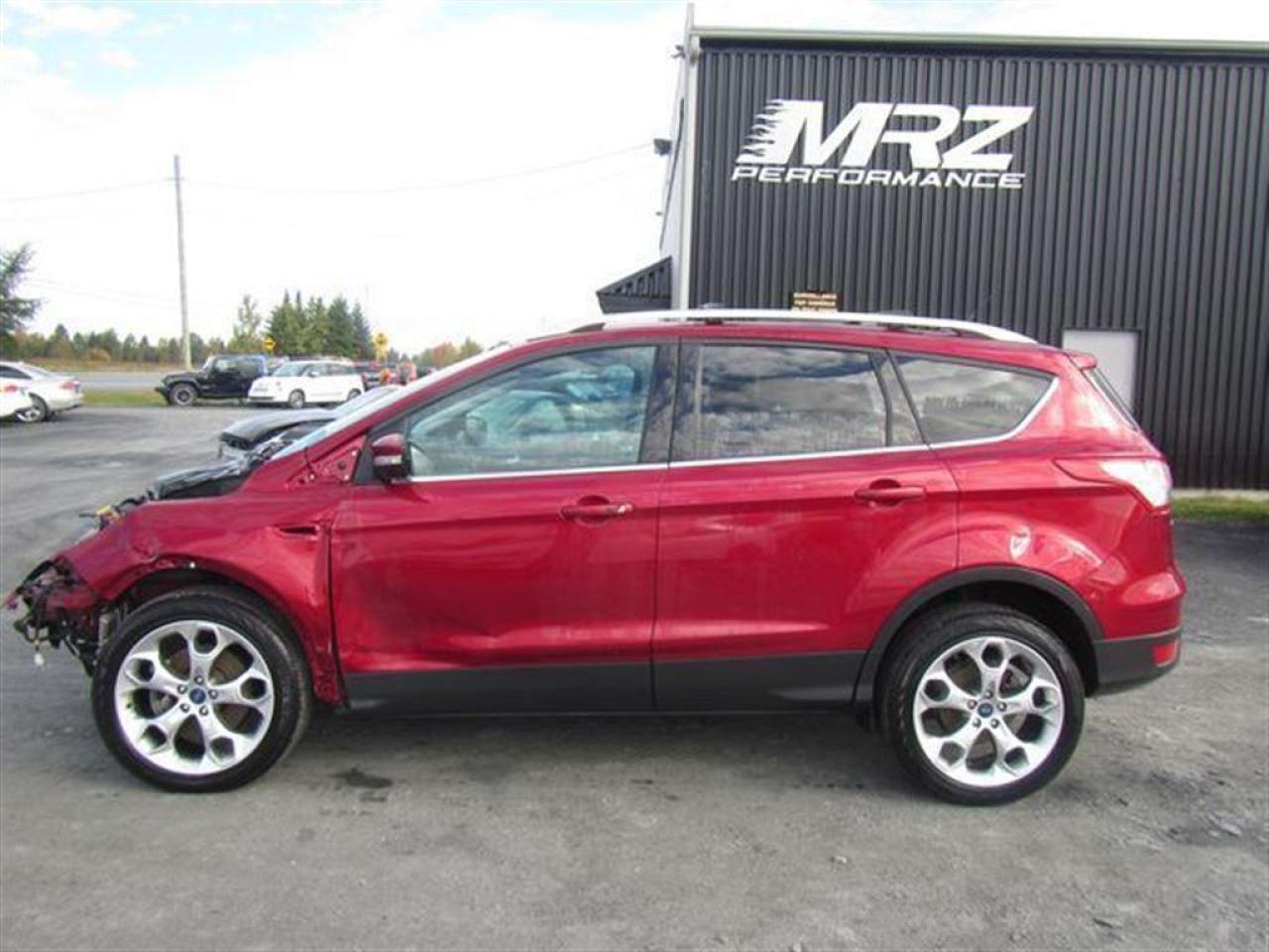 Ford Escape Titanium 2013 Rouge ruby métallique, Très belle couleur à voir absolument!! Le plus équipé des Escape disponible sur le marché!! À ne pas manquer! - * Visitez le WWW.MRZPERFORMANCE.COM pour tous détails et beaucoup plus de photos! * - Moteur 4 Cyl Ecoboost de 2.0l développant 240HP et 270 lbs/tq! TRÈS puissant pour la grosseur du véhicule!! Transmission automatique 6 vitesses. Traction intégrale ( AWD ) - Très économique!! +/- 8.5 litres au 100km!! Très bas kilométrage! Seulement 26000km. Full équip!! Intérieur en cuir noir - Siège chauffants et électriques - Mags 19'' avec tires neufs - Système de navigation GPS - Lumières avant HID - Miroirs électriques et chauffant - Vitres teintées - Rack de toit - Aileron - Commande au volant - SYNC - Télécommande d'ouverture porte de garage - A/C bi zones - MYKEY - MYFORD TOUCH - 1 Clé + Démarreur à distance OEM - Toit ouvrant panoramique - Sirius - Lecteur CD - Cruise control - Fogs lamp - ETC! Accidenté léger à l'avant du véhicule. Besoin d'un devant assemblé ( Disponible à 5000$ ). Nous pouvons vous fournir les pièces nécessaires à la réparation de ce véhicule à prix très compétitif. Disponible tel quel ou réparé par des professionnels et inspecté par la SAAQ - Mécanique en parfait état de marche!! Ballon AVG, ballon genoux gauche et ceinture gau déployés. Pas cher dans le neuf. *** VGA CANADIEN / SALVAGE TITLE*** - Valeur a neuf de plus de 42 600$!! *** Pas de camouflage de dommages sur nos véhicules! PLUSIEURS AUTRES ESCAPE 2013 EN STOCK !!!! Venez nous voir ou allez visité notre site internet pour plus d'informations! *** Acheter en toute tranquillité car nous sommes membres AMVOQ! Automobiles MRZ, la référence dans l'accidenté léger au Québec! WE SPEAK ENGLISH PLEASE CONTACT US - MRZ IS THE VEHICLE CAR EXPORT AND IMPORT SPECIALIST - USA - AFRICA - MIDDLE EAST - EUROPE - MRZ EST LE SPÉCIALISTE EN EXPORTATION et IMPORTATION DE VÉHICULES - USA - AFRIQUE - EUROPE - PROCHE ORIENT - Visitez-nous aussi sur Facebook - Merci!