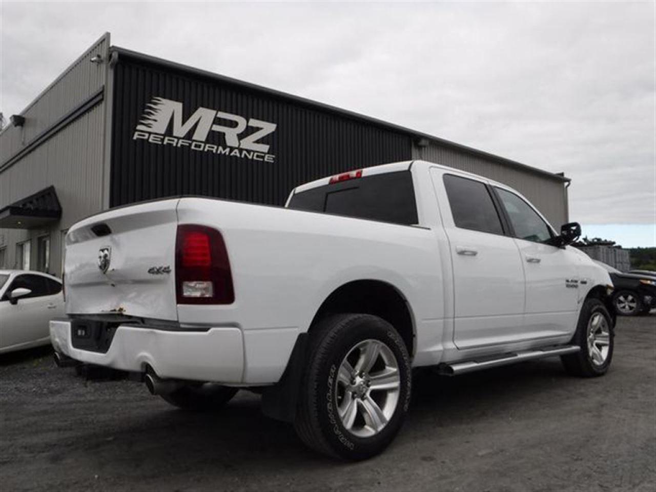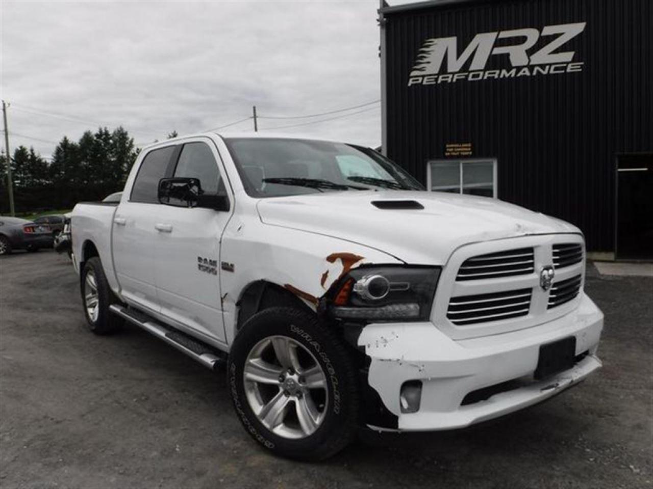 Dodge Ram 1500 SPORT R/T 4X4 2014 Blanc, Crewcab avec boite de 5.5pi - Un truck avec un look d'enfer à voir absolument! Camion sans pareil en blanc avec intérieur noir - Faites l'envie de tous avec un des plus beau camion sur le marché! - * Visitez le WWW.MRZPERFORMANCE.COM pour tous les détails et beaucoup plus de photos!! * - Faites vite, les RAM Sport en tres grande demande et ca part vite - Moteur V8 5.7l HEMI de 390HP avec transmission automatique 8 vitesses à bouton électronique. Très puissant! Très bas kilométrage, Seulement 57 800 km! Ultra clean, kilométrage de route, pas de bois ou de chemin de terre! 4X4 Crew Cab avec boite de 5.5pi. Camion tres bien équipé! Mags 20'' - Miroirs électriques et chauffants - Miroirs power fold - Towing Package - Commandes au volant - Bluetooth - Sirius - Prise USB- Prise 12V et 115V - Backglass sliding électrique - Intérieur en cuir et tissus noir - A/C - Lecteur CD/MP3 - Cruise control - Tout électrique - Fogs - Console centrale - Grosse écran tactile - Marchepieds - Vitres teintées - Caméra de recul - Line X - Hood R/T - Chauffe moteur - Vitres et Sièges électriques - Wiper intermittent - 2X Clés intelligente - Différentiel autobloquant - Télécommande porte garage - etc!! Tout un truck!-- Accidenté léger à l'avant droit ainsi que très légèrement à l'arrière du camion. On vous mets carrément au défi de trouver un RAM accidenté avec moin de dommages que celui ci. Très facilement réparable à faible coût. Pour la réparation, Besoin des 2X Miroirs, Parebrise, Aile avant droit avec Fausse aile, Mag et Pneu avant droit, Hood, Bracket lumière droit, 2X Lumières avant, Bumper avant assemblé, Shroud fan, Bumper arrière assemblé, Tailgate et la Trim porte arrière droit. A réparé: Porte avant droit, Aile avant gauche, Porte arrière gauche (prune), Poteau toit gauche (légèrement), Coté boite droit (prune) et le Rebord boite arrière (légèrement). 1X Mag d'égratigné légerement. Tous les ballons et ceintures sont intacts. Nous pouvons vous fournir les pièces nécessaires à la réparation de ce véhicule à prix très compétitif. Disponible tel quel ou réparé par des professionnels et inspecté par la SAAQ - Mécanique intact et en parfait état de marche! La suspension avant droit a été changée a l'arrivée du véhicule sur place. Un autre super beau Ram dans notre bel inventaire de camion légèrement accidenté!! À voir sans faute! Pick-up très recherché!! Valeur à neuf de près de 52 200$!! * VGA CANADIEN / SALVAGE TITLE * - PLUSIEURS AUTRES PICK-UP EN STOCK!! Venez nous voir ou allez visiter notre site internet pour plus d'informations! - N'hésitez pas à nous rejoindre avec vos questions! Automobiles MRZ, la référence dans l'accidenté léger au Québec! WE SPEAK ENGLISH PLEASE CONTACT US - MRZ IS THE VEHICLE CAR EXPORT AND IMPORT SPECIALIST - USA - AFRICA - MIDDLE EAST - EUROPE - MRZ EST LE SPÉCIALISTE EN EXPORTATION et IMPORTATION DE VÉHICULES - USA - AFRIQUE - EUROPE - PROCHE ORIENT - Visitez-nous aussi sur Facebook - Merci!