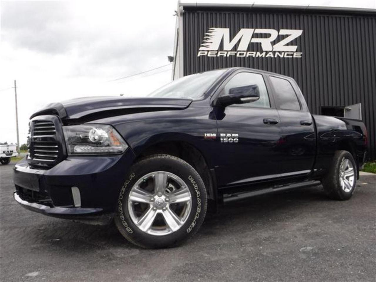 Dodge Ram 1500 Sport 4X4 2014 Bleu avec intérieur en cuir/tissu noir - Un autre beau camion RAM dans notre inventaire de camion légèrement accidenté!! Très bien équipé avec le Cuir/tissu, Sièges chauffants, Volant chauffant, Caméra de recul, Towing package et encore plus!! Camion à l'état neuf avec seulement 25 500km au compteur!! Une vraie aubaine!! * Visitez le WWW.MRZPERFORMANCE.COM pour tous les détails et pour plus de 100 photos!! * - Faites vite, ce truck ne restera pas longtemps dans notre cour, ca c'est sûr! Tres forte demande pour ces camions - Moteur V8 5.7l HEMI de 390HP avec transmission automatique 8 vitesses à bouton électronique. Très puissant! Très bas kilométrage, État neuf avec seulement 25 500 km!! 4X4 - Quad Cab avec boite de 6.5pi. Très bien équipé: Mags 20'' avec Pneus All terrain en très bonne condition!! - Miroirs électriques et chauffants - Towing Package - Commandes au volant - Bluetooth - Sirius - Prise USB- Prise 12V et 115V - Backglass sliding électrique - Intérieur en cuir/tissu noir - Sièges électriques et chauffants - A/C dual zones - Système audio Alpine avec sub - Cruise control - Tout électrique - Fogs - Console centrale - Centre multimédia avec grosse écran tactile - Vitres électriques - Wiper intermittent - 1 Clé intelligente avec démarreur OEM - Push to start (démarrage) - Volant chauffant - Boite frein électrique - Télécommande porte garage - Marchepied - Vitre teintées - Caméra de recul - Miroirs power fold - Différentiel autobloquant - Garde boue - Lumières arrière LED - Chauffe moteur - Lumières avant projector halogene - etc!! Accidenté légèrement à l'avant et sur le coté droit du camion. Très belle accident sur la tôle seulement, pas de gros impact, de toute évidence pas frappé dans le frame (mais toujours a vérifier quand meme) et laissant la mécanique intacte. -- Pour la réparation besoin de les 2X Portes droites, Miroir droit, Aile avec Fausse aile avant droit, Hood, Support radiateur, Grille avant, Shroud fan, Lumière avant droit, Bumper avant, Tail light droit, Coté boite droit (tôle extérieur) et le Coin cab droit (partie supérieur). A réparé: Poteau parebrise droit (légèrement), Aile avant gauche (léger), Longeron supérieur droit (ou sinon a changer), Tailgate et le Bumper arrière (grafigné). Tous les Ballons et les Ceintures sont intacts. Nous pouvons vous fournir les pièces nécessaires à la réparation de ce véhicule à prix très compétitif. Disponible tel quel ou réparé par des professionnels et inspecté par la SAAQ - Tous les Radiateurs sont pleins et intacts. Aucun impact dans les roues, direction et suspension intact. Toute la mécanique est intact et en parfaite état de marche. À voir sans faute! Camion très en demande sur le marché!! Faites vous ce beau Ram très bien équipé pour une fraction du prix d'un usagé!! ÉTAT NEUF !! Très peu de kilo au compteur!! A VOIR SANS FAUTE!! * VGA CANADIEN / SALVAGE TITLE * - PLUSIEURS AUTRES PICK-UP EN STOCK!! Aucun camouflage de dommages sur nos véhicules! Venez nous voir ou allez visiter notre site internet pour plus d'informations! - N'hésitez pas à nous rejoindre avec vos questions! Automobiles MRZ, la référence dans l'accidenté léger au Québec! WE SPEAK ENGLISH PLEASE CONTACT US - MRZ IS THE VEHICLE CAR EXPORT AND IMPORT SPECIALIST - USA - AFRICA - MIDDLE EAST - EUROPE - MRZ EST LE SPÉCIALISTE EN EXPORTATION et IMPORTATION DE VÉHICULES - USA - AFRIQUE - EUROPE - PROCHE ORIENT Visitez-nous aussi sur Facebook! Merci!