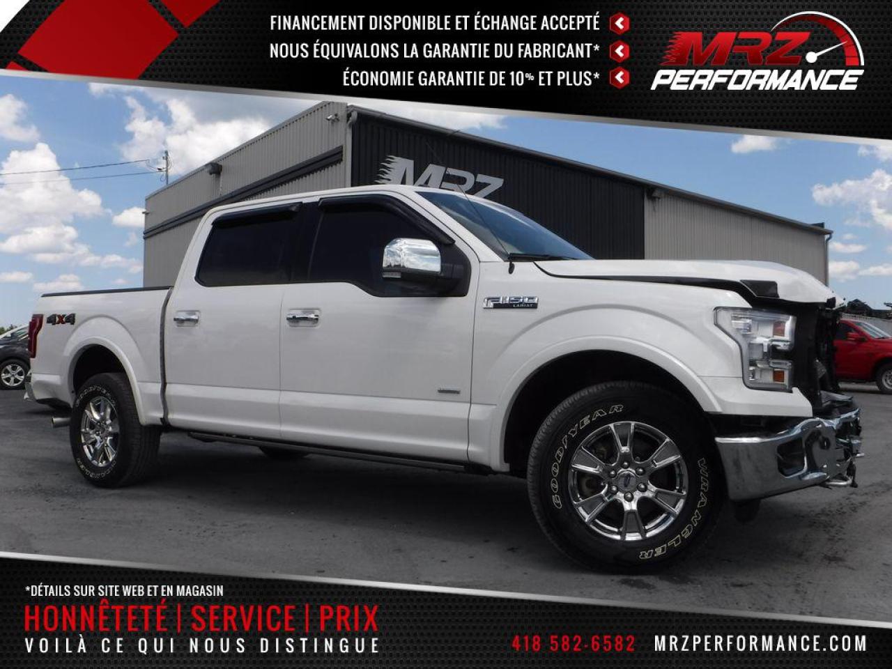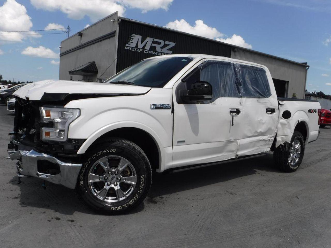 Ford F-150 Lariat - 4X4 2015 NOUVEAU MODÈLE AVEC UN LOOK A COUPER LE SOUFFLE! - Crew cab avec la boite 5.5' - Blanc métallique avec intérieur en cuir noir - ÉTAT NEUF avec tout juste 11 100 KM Il est flambant neuf! L'un des plus beau F-150 sur le marché présentement! - Faites vite modèle très populaire qui ne restera pas longtemps disponible!- * Visitez le WWW.MRZPERFORMANCE.COM pour tous les détails et beaucoup plus de photos! * - Moteur V6 EcoBoost 3.5l avec transmission automatique. Puissance, économie d'essence et fiabilité au rendez-vous! Super Crew Cab ( 4 grandes portes ) avec boite de 5.5 pi . 4X4 - EXTRA CLEAN - ÉTAT NEUF avec seul. 11 100km!!- Modèle Lariat tout équipé: - Intérieur en cuir noir - Sièges électriques, chauffants et climatisants - Caméra de recul - Sensor de recul - Trailer Tow Package - Keyless entry pad - Superbe Mags 18'' chrome avec pneus All terrain comme neufs!! - Cruise control - Tout électrique - SYNC - A/C dual zones - Fond de boite shooté OEM - Fog lights - Vitres teintées - Tailgate avec marche - Moulures d'ailes - Sirius - Commandes au volant - My Ford Touch - Vitres électriques - Miroirs électriques et chauffants - Miroirs power fold - Boite de frein électrique - Wiper intermittent - Bluetooth - Console centrale - Prise 12V/110V - Prise USB - Lecteur CD/MP3 - Chauffe moteur - 1X Clé intelligente avec démarreur OEM - Télécommande porte garage - Système audio SONY avec sub - Système navigation GPS avec grosse écran tactile - Sélecteur 4X4 avec bouton électronique - Blind spot alert - Push to start (démarrage) - Backglass power sliding - Volant chauffant - Sièges arrière chauffant - Tailgate électrique - Marchepieds électrique - Déflecteur vitre - Lumière avant LED - ETC! Accidenté à l'avant ainsi que légèrement sur le coté gauche du camion. Pour la réparation, Besoin du Parebrise, Porte avant gauche (tôle extérieur) avec la Vitre, Miroir gauche, Aile avant gauche, Hood, 2X Lumières avant avec les Contours de lumières de plastique, Support radiateur supérieur et inférieur, Grille avant, Shutter, Bumper avant assemblé, Condenseur, 2X Fogs, Porte arrière gauche, Coin cab gauche, Coté boite gauche (tôle extérieur), Intercooler avec les Brackets ainsi que de quelques plastiques de finitions. A réparé: Aile avant droit (léger), Coté boite droit et la Porte arrière droit (petite bosse). Le Mag avant gauche ainsi que le Bumper arrière le chrome est égratigné légèrement. Le Radiateur est a vérifier mais semble plein. Ce superbe F150 est présenté tel que nous l'avons acheté, pas étiré et pas camouflé comme chez la compétition. Pas de gros frame à faire sur ce véhicule (toujours mieux de vérifier tout de même), frappé directement dans le mou, Seulement de la tôle a remplacer. Tout un camion a ne pas manquer! Un look absolument incroyable! Tous les ballons et ceintures intacts! Nous pouvons vous fournir les pièces nécessaires à la réparation de ce véhicule à prix très compétitif. Disponible tel quel ou réparé par des professionnels et inspecté par la SAAQ - Très beau look! Faites-vous ce superbe F-150 pour une fraction du prix d'un usagé!! L'un des plus beaux F-150 Lariat disponible présentement sur le marché!! On vous met au défi de trouver meilleur qualité prix chez la compétition surtout avec seulement 11 100km au compteur!! Tout simplement à l'état neuf!! Encore une fois les plus beaux camions se retrouvent chez Automobiles Mrz!! ** VGA Canadien / SALVAGE TITLE** - Aucun camouflage de dommages sur nos véhicules! - Membres AMVOQ - PLUSIEURS AUTRES PICK UP EN STOCK, FX4! Venez nous voir ou allez visiter notre site internet pour plus d'informations! - Automobiles MRZ, la référence dans l'accidenté léger au Québec! WE SPEAK ENGLISH PLEASE CONTACT US - MRZ IS THE VEHICLE CAR EXPORT AND IMPORT SPECIALIST - USA - AFRICA - MIDDLE EAST - EUROPE - MRZ EST LE SPÉCIALISTE EN EXPORTATION et IMPORTATION DE VÉHICULES - USA - AFRIQUE - EUROPE - PROCHE ORIENT Visitez-nous aussi sur Facebook! Merci