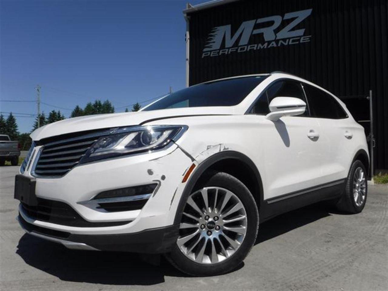 Lincoln MKC AWD 2.0L Ecoboost 2015 Blanc Perlé avec intérieur en cuir noir et bois laminé, choix de couleur sublime - ÉTAT NEUF- Véhicule haut de gamme sans pareil - Extrèmement recherché auprès de nos clients!! Très rare sur le marché!! Faites vite il ne restera pas longtemps disponible ça c'est sur!!! FULL FULL ÉQUIP!! Ce magnifique VUS ne laisse personne indifférent - * Visitez le WWW.MRZPERFORMANCE.COM pour tous les détails et beaucoup plus de photos! * - Puissant Moteur 4 cyl 2.0l Ecoboost avec transmission automatique 6 vitesses. Traction intégrale AWD - Très bas kilométrage!! - seulement 48 200 km! Modèle de VUS très luxueux et absolument tout équipé!! Intérieur en cuir noir - Sièges électriques,chauffants et climatisés - vrai bois laminé dans les portes et tableau de bord - Toit ouvrant panoramique - Système de navigation GPS avec grosse écran tactile - A/C bi-zone - Key less entry pad - MY LINCOLN TOUCH - Sirius - Système de son avec sub - Moniteur d'angle mort - Lecteur CD MP3 - Vitres électriques - Miroirs électriques et chauffants - Aileron - Mags 18'' avec Pneus Michelin en bon état!! - Vitres teintés - Fog lights - Grille avant chrome - Commandes au volant - Bluetooth - Caméra de recul - Sensor de recul - SYNC - Chauffe moteur - Push button (démarrage) - Prise 12V - 2X Clé intelligentes avec Démarreur distance OEM - Prise USB - Wiper intermittent - AWD - Cruise control - Volant chauffant - Télécommande porte garage - Conduit chauffage arrière - Commandes changement de vitesse au volant - Rack toit chrome - Lumières HID - Superbe finition bois - Hayon a commande électrique - Pédale ajustable - Sièges arrières chauffants - Cache bagage -etc!! Accidenté légèrement à l'avant ainsi que tres légèrement a l'arrière droit du véhicule. Ce superbe MKC est présenté tel que nous l'avons acheté, pas étiré et pas camouflé comme chez la compétition. Acheté en marche, run and drive. Aucun camouflage de dommages sur nos véhicules! Pour la réparation, Besoin des 2X Ailes avant, Hood, Support radiateur supérieur, Lumière avant droit, Bumper avant assemblé, Shutter, Fog droit, 2X Moulures d'ailes gauche, Porte arrière droit, Moulure d'aile arrière droit ainsi que de quelques plastiques de finitions. A réparé: Longeron avant droit (légèrement) et le Dog leg arrière droit (légèrement). Il y a 3X Mags d'égratignés (voir photo). Le Bumper arrière est égratigné. Tous les radiateurs semble pleins et intacts. La Table inférieur avant gauche à été changer lors de l'arrivée du véhicule sur place. Tous les ballons et ceintures sont intacts. Nous pouvons vous fournir les pièces nécessaires à la réparation de ce véhicule à prix très compétitif. Disponible tel quel ou réparé par des professionnels et inspecté par la SAAQ - Accident vraiment très facile à réparer avec toute la mécanique intacte et en parfait état de marche. Impact à eu lieu directement dans le mou vraiment léger! La plus belle accident possible! Ne manquer pas la chance de vous procurez ce véritable bijou! Faites vite modèle de VUS très populaire et surtout très rare sur le marché!! ÉTAT NEUF!! - *** Pas de camouflage de dommages sur nos véhicules! - * VGA CANADIEN / SALVAGE TITLE*- PLUSIEURS AUTRES VUS / MULTI-SEGMENT EN STOCK!!! Venez nous voir ou allez visiter notre site internet pour plus d'informations! *** Achetez en toute tranquillité car nous sommes membres AMVOQ! Automobiles MRZ, la référence dans l'accidenté léger au Québec! WE SPEAK ENGLISH PLEASE CONTACT US - MRZ IS THE VEHICLE CAR EXPORT AND IMPORT SPECIALIST - USA - AFRICA - MIDDLE EAST - EUROPE - MRZ EST LE SPÉCIALISTE EN EXPORTATION et IMPORTATION DE VÉHICULES - USA - AFRIQUE - EUROPE - PROCHE ORIENT Visitez-nous aussi sur Facebook! Merci!