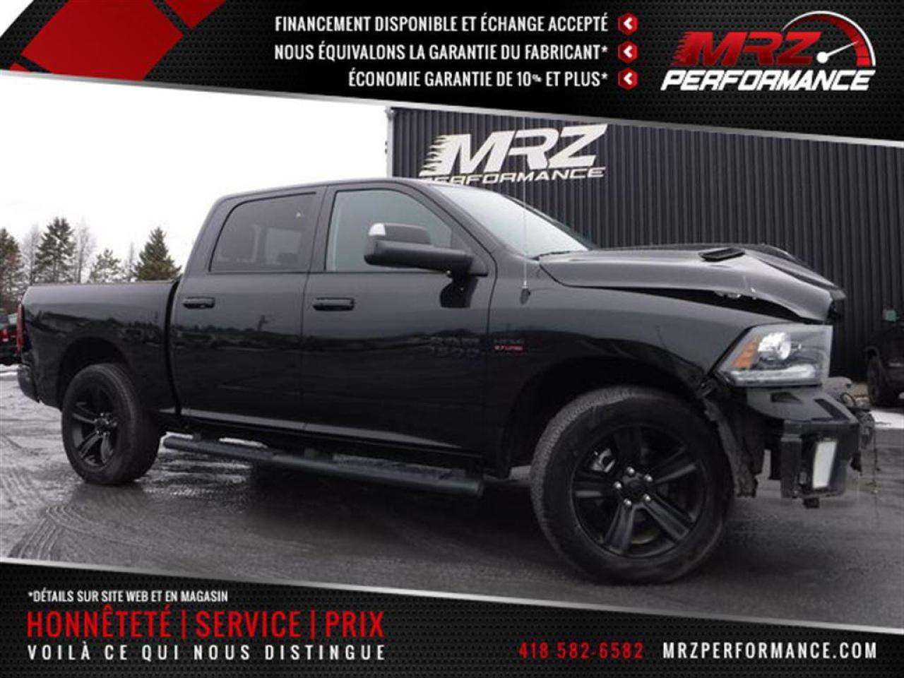 ** VÉHICULE EN RÉPARATION, DISPONIBLE SOUS PEU** DISPONIBILITÉ ET PRIX A CONFIRMER LORS DE LA MISE EN VENTE A L'ÉTAT RÉPARÉ - Dodge Ram 1500 SPORT R/T 4X4 2016 Noir avec intérieur en cuir noir, BLACK IN BLACK!!! Crew cab avec boite de 5.5pi - Un truck avec un look d'enfer à voir absolument! - Faites l'envie de tous avec un des plus beau camion sur le marché! Absolument tout équipé et surtout à l'état neuf avec très peu de kilo au compteur!! Réservez le tôt, il ne restera pas longtemps disponible dans nôtre bel inventaire de camion prêt à partir!!- * Visitez le WWW.MRZPERFORMANCE.COM pour tous les détails et beaucoup plus de photos!! * - Faites vite, les RAM Sport R/T sont en très grande demande et ça part vite - Moteur V8 5.7l HEMI de 390HP avec transmission automatique 8 rapports avec bouton électronique. Très puissant! Comme neuf!! Très bas kilométrage, Seulement 26 600 km! 4X4 Crew Cab avec boite de 5.5pi. Camion FULL EQUIP!! - Superbe Mags noir 20'' avec pneus All Terrain en bonne condition!! - Miroirs de remorquage électriques et chauffants - Miroirs power fold - Commandes au volant - Bluetooth - Sirius - Prise USB - Prise 12V et 115V - Backglass sliding électrique - Intérieur en cuir noir - A/C - Cruise control - Tout électrique - Fogs - Console centrale - Système navigation GPS avec grosse écran tactile - Vitres teintées - Chauffe moteur - Vitres électriques - Sièges électriques, chauffants et climatisants - Wiper intermittent - Différentiel autobloquant - Télécommande porte garage - Lumières avant projector halogène - 2X Clés intelligentes avec Démarreur OEM - Lumières arrière LED - Fond boite shooté - Push to start (démarrage) - Toit ouvrant - Système audio ALPINE avec sub - Caméra de recul - Volant chauffant - Marchepieds tubulaire - Sensor de recul - Hood R/T - etc!! Tout un truck!-- Ce camion avait subit de légers dommages, réparé par des professionnels et inspecté par la SAAQ en 195 points. Nous sommes fier de notre travail et CE VÉHICULE SERA IMPECCABLE à tout point de vue!! À voir sans faute! Un autre super beau Ram disponible sous peu dans notre bel inventaire de camion prêt à partir!! Impossible de trouver meilleur qualité prix chez la concurrence! Faites vite!! * Reconstruit / Rebuilt title - Véhicule Canadien* - PLUSIEURS AUTRES PICK-UP PRÊT À PARTIR EN STOCK!! Venez nous voir ou allez visiter notre site internet pour plus d'informations! - N'hésitez pas à nous rejoindre avec vos questions! Automobiles MRZ, la référence dans l'accidenté léger au Québec! WE SPEAK ENGLISH PLEASE CONTACT US - MRZ IS THE VEHICLE CAR EXPORT AND IMPORT SPECIALIST - USA - AFRICA - MIDDLE EAST - EUROPE - MRZ EST LE SPÉCIALISTE EN EXPORTATION et IMPORTATION DE VÉHICULES - USA - AFRIQUE - EUROPE - PROCHE ORIENT Visitez-nous aussi sur Facebook! Merci!