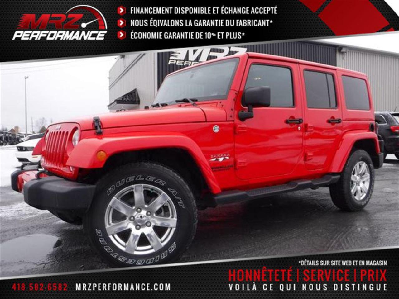 Jeep Wrangler Unlimited Sahara 2016 Rouge - AUTOMATIQUE - FULL ÉQUIP L'un des plus beau Jeep de notre inventaire!! Carrément à l'état neuf avec Seul. 3959 km au compteur!! Une véritable aubaine signé Automobiles Mrz!! Faites vite il ne restera pas longtemps dans notre cours ça je vous le garantie!! Véhicule très populaire,ne manquer pas la chance de vous procurez ce beau petit jouet! De tout évidence ce Jeep n'a jamais fais de hors route!! - * Visitez le WWW.MRZPERFORMANCE.COM pour tous les détails et beaucoup plus de photos! * ÉTAT NEUF avec Seulement 3959km!! - 4x4 Lo/Hi - Moteur V6 3.6l nouvelle génération avec transmission automatique - Très puissant, près de 300HP!! - Superbe Mags 18'' avec pneus Bridgestone Dueler flambant neuf!! - FULL ÉQUIP:- Vitres teintées - Commandes au volant - Prise 12V / 115V - Lecteur CD/MP3 - Wiper intermittents - Cruise control - Prise USB - Sélecteur 4WD/2WD - Fog lights - 1X Clé avec démarreur OEM - Moulures d'ailes peinturés - Toit dure peinturé - Miroirs électriques et chauffants - Vitres électriques - Bluetooth - Système navigation GPS avec grosse écran tactile - Sirius - A/C - Console centrale - Chauffe moteur - Jeep UConnect - Door lock - Sièges avant chauffants - Automatique - Marchepieds - etc! Ce Jeep avais subit de légers dommages, réparé par des professionnels et inspecté par la SAAQ. Nous sommes fier de notre travail et CE VÉHICULE EST IMPECCABLE à tout point de vue!! À voir sans faute! L'un des plus beau JEEP dans notre cours!! Impossible de trouver un Jeep avec moins de kilo que le nôtre!! Vraiment un superbe Wrangler FULL ÉQUIP!! À NE PAS MANQUER!! JAMAIS FAIS DE HORS ROUTE!! TRÈS PROPRE!! ** Reconstruit / Rebuilt title - Véhicule Canadien ** - Plusieurs autres VUS ET CAMIONNETTES PRÊT À PARTIR en inventaire - AUCUN CAMOUFLAGE DE DOMMAGES SUR NOS VÉHICULES! *** Membres AMVOQ - Venez nous voir ou allez visiter notre site internet pour plus d'informations! Automobiles MRZ, la référence dans l'accidenté léger au Québec WE SPEAK ENGLISH PLEASE CONTACT US - MRZ IS THE VEHICLE CAR EXPORT AND IMPORT SPECIALIST - USA - AFRICA - MIDDLE EAST - EUROPE - MRZ EST LE SPÉCIALISTE EN EXPORTATION et IMPORTATION DE VÉHICULES - USA - AFRIQUE - EUROPE - PROCHE ORIENT ! Visitez-nous aussi sur Facebook! Merci!