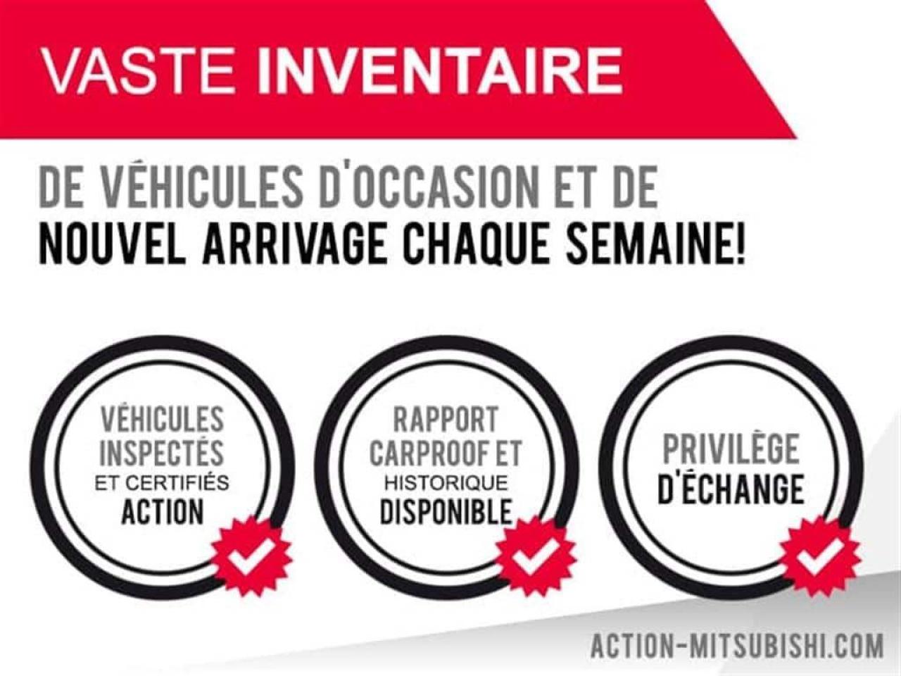 BALANCE DE GARANTIE 10ANS/160,000KM! 4 ROUES MOTRICES, Moteur V6, AIR CLIMATISÉ, Sièges Chauffants, SYSTÈME DE SON ROCKFORD FOSGATE 710W + SUBWOOFER DE 10 POUCES, Toit Ouvrant, SIÈGES EN CUIR, Phares Antibrouillards, DÉMARRAGE SANS CLÉ F.A.S.T, Jantes en Alliage 18 Pouces, VITRES ÉLECTRIQUES ET TEINTÉES, Siège Électrique, PORTES ÉLECTRIQUES, Miroirs Électriques et Chauffants, TÉLÉ-DÉVERROUILLAGE ET BIEN PLUS+++ (AWC, AWD, 4WD, 4x4, S-AWC) À NE PAS MANQUER!!! **OUVERT LE SAMEDI/OPEN SATURDAY** APPELEZ-NOUS/ CALL US: (450) 443-7330. DE PARTOUT AU CANADA SANS FRAIS/ ANYWHERE IN CANADA FREE OF CHARGE: 1-877-820-2602 VENEZ en faire L'ESSAI chez ACTION MITSUBISHI à ST-HUBERT (LONGUEUIL), EN MONTÉRÉGIE, SUR LA RIVE-SUD DE MONTRÉAL. Que ce soit pour un véhicule utilitaire sport, une mini-fourgonnette, un camion, une convertible (décapotable), une berline, une voiture sport, un coupé 2 portes, un pick-up ou tout autre véhicule, si nous l'avons pas en inventaire et bien nous le trouverons pour vous, et ce au meilleur prix du marché comme toujours !!! Tous nos véhicules sont inspectés, réparés et certifiés CARPROOF. Nous offrons aussi les meilleurs taux d'intérêts disponible et 100% d'approbation! Notre service après vente axé sur la satisfaction de nos clients, la qualité de notre personnel, notre transparence et notre professionnalisme ne sont la que 4 autres bonnes raisons de nous faire confiance! Nous déservons les villes de Beloeil à Longueuil, De Chambly à St-Bruno, De St-Basile à Marieville, De Richelieu à St-Mathias, De Mont-St-Hilaire à Carignan, Le plus gros centre de véhicules d'occasion Mitsubishi sur la rive sud de Montréal, à 5 minutes du PONT CHAMPLAIN et JACQUES-CARTIER. Merci de toute l'équipe d'ACTION MITSUBISHI !!! www.action-mitsubishi.com NOUS PRENONS EN ÉCHANGE TOUTES LES MARQUES COMME ACURA, AUDI, BMW, CADILLAC CHEVROLET, CHRYSLER, DODGE, FIAT, GMC, HONDA, HYUNDAI, JAGUAR, JEEP, KIA, LAND ROVER, MAZDA, MERCEDEZ, NISSAN, SCION, TOYOTA, VOLKSWAGEN ET AUTRE. NOUS PRENONS AUSSI EN ÉCHANGE TOUS LES MODÈLES TELS QUE CIVIC, COROLLA, CRUZE, C250, C300, 350, DART, ELANTRA, FORTE, FOCUS, FRS, GOLF, KOUP, MAZDA 3, SENTRA, TC, 128I, 135I ET AUTRES. Au plaisir de vous servir !! Come and test drive your next vehicle at ACTION MITSUBISHI in ST HUBERT, on the SOUTH SHORE of MONTREAL. We have the largest inventory of used Mitsubishi vehicles on the South Shore of Montreal . We are located 5 minutes from CHAMPLAIN AND JACQUES-CARTIER BRIDGE. If you do not see what you are looking for in our inventory, let us know and we will find it for you at the cheapest price possible, AS USUAL! All our cars are INSPECTED, REPAIRED and CARPROOF Certified. We offer the best interest rate available and have a 100% approval rate! We trade in every brand and model. Please visit us on www.action-mitsubishi.com and on behalf of Action Mitsubishi, thank you for browsing our vehicles.