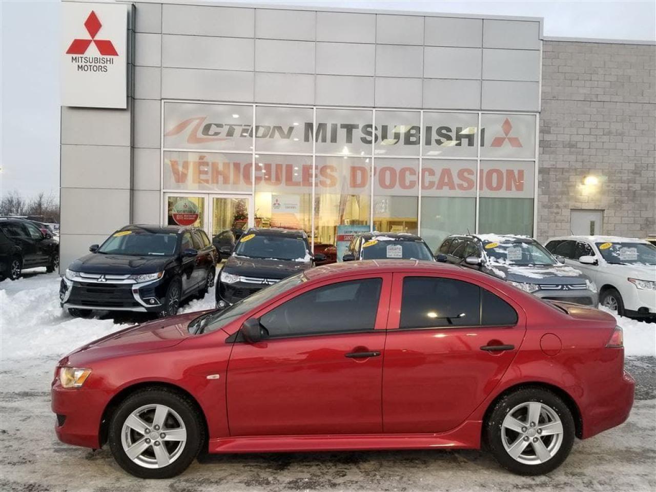 *GARANTIE 10ANS/160 000KM* UN SEUL PROPRIÉTAIRE! JAMAIS ACCIDENTÉ! AILERON, Radio AM/FM/CD/MP3, Miroirs Électriques et Chauffants, VITRES ÉLECTRIQUES, FREINS ABS, Télé-Déverrouillage ET BIEN PLUS +++ À NE PAS MANQUER !!!!! BALANCE DE LA GARANTIE MITSUBISHI INCLUSE DE 10 ANS OU 160 000 KM !!!!!**OUVERT LE SAMEDI/OPEN SATURDAY** DE PARTOUT AU CANADA SANS FRAIS: 1-877-820-2602. WE ALSO SPEAK ENGLISH, VENEZ en faire L'ESSAI chez ACTION MITSUBISHI à ST-HUBERT (LONGUEUIL), EN MONTÉRÉGIE, SUR LA RIVE-SUD DE MONTRÉAL. Nous déservons les villes de Beloeil à Longueuil, De Chambly à St-Bruno, De St-Basile à Marieville, De Richelieu à St-Mathias, De Mont-St-Hilaire à Carignan, Le plus gros centre de véhicules d'occasion Mitsubishi sur la rive sud de Montréal, à 5 minutes du PONT CHAMPLAIN et JACQUES-CARTIER. Que ce soit pour un véhicule utilitaire sport, une mini-fourgonette, un camion, une convertible (décapotable), une berline, une voiture sport, un coupé 2 portes, un pick-up ou tout autre véhicule, si nous l'avons pas en inventaire et bien nous le trouverons pour vous, et ce au meilleur prix du marché comme toujours !!! Tous nos véhicules sont inspectés, réparés et certifiés CARPROOF. Nous offrons aussi les meilleurs taux d'intérêts disponible et 100% d'approbation! Notre service après vente axé sur la satisfaction de nos clients, la qualité de notre personnel, notre transparence et notre professionnalisme ne sont la que 4 autres bonnes raisons de nous faire confiance!! Merci de toute l'équipe d'ACTION MITSUBISHI !!! www.action-mitsubishi.com NOUS PRENONS EN ÉCHANGE TOUT LES MARQUE COMME ACURA, AUDI, BMW, CADILLAC CHEVROLET, CHRYSLER, DODGE, FIAT, GMC, HONDA, HYUNDAI, JAGUAR, JEEP, KIA, LAND ROVER, MAZDA, MERCEDEZ, NISSAN, SCION, TOYOTA, VOLKSWAGEN ET AUTRE NOUS PRENONS EN ÉCHANGE TOUS LES MODÈLES TEL QUE CIVIC, COROLLA, CRUZE, C250, C300, C350, DART, ELANTRA, FORTE, FOCUS, FRS, GOLF, KOUP, MAZDA 3, SENTRA, TC, 128I, 135I ET AUTRES.