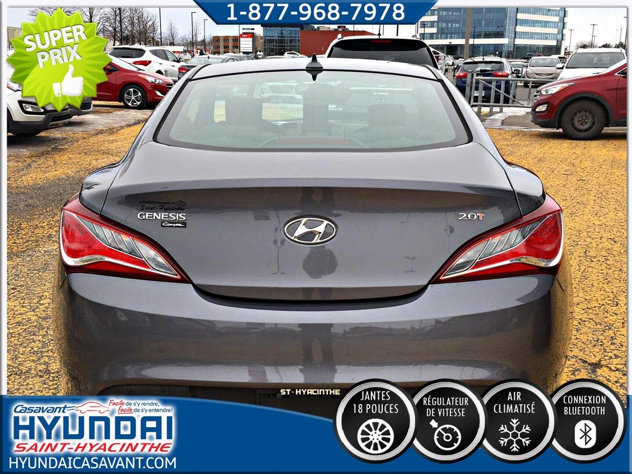 Hyundai Genesis Coup? 2.0 L turbo ** Super belle voiture ** Jamais accident?, un seul propri?taire 2014Régulateur de vitesse, Essuie-glaces intermittents, Freins ABS, Contrôle de stabilité, Coussin gonflable conducteur, Coussins gonflables latéraux, Lecteur CD, Lecteur MP3, Portes électriques, Vitres électriques, Air climatisé, Commandes audio au volant, Sièges chauffants, Volant ajustable, Tapis protecteurs, Ordinateur de bord, Tout équipé, Volant gainé de cuir, Direction assistée, Télédéverrouillage, Rétroviseurs chauffants, Freins à disque, Rétroviseurs électriques, Jantes en alliage, Antipatinage, Phares antibrouillards, Sièges baquets, Prise Auxiliaire, Port USB