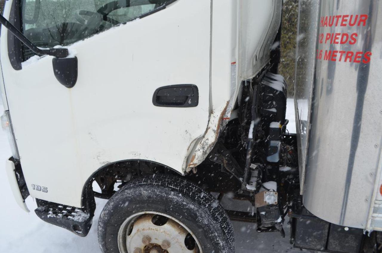CAMION HINO 20 PIEDS AVEC RAMPE DIESEL AVEC DOMMAGE A LA CABINE AVANT COTE GAUCHE NON RÉPARÉ, AUCUN CARPROOF, CE VÉHICULE VOUS INTÉRESSE APPELER PIERRE AU 514-968-9888 7 JOURS SEMAINE