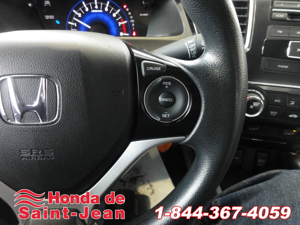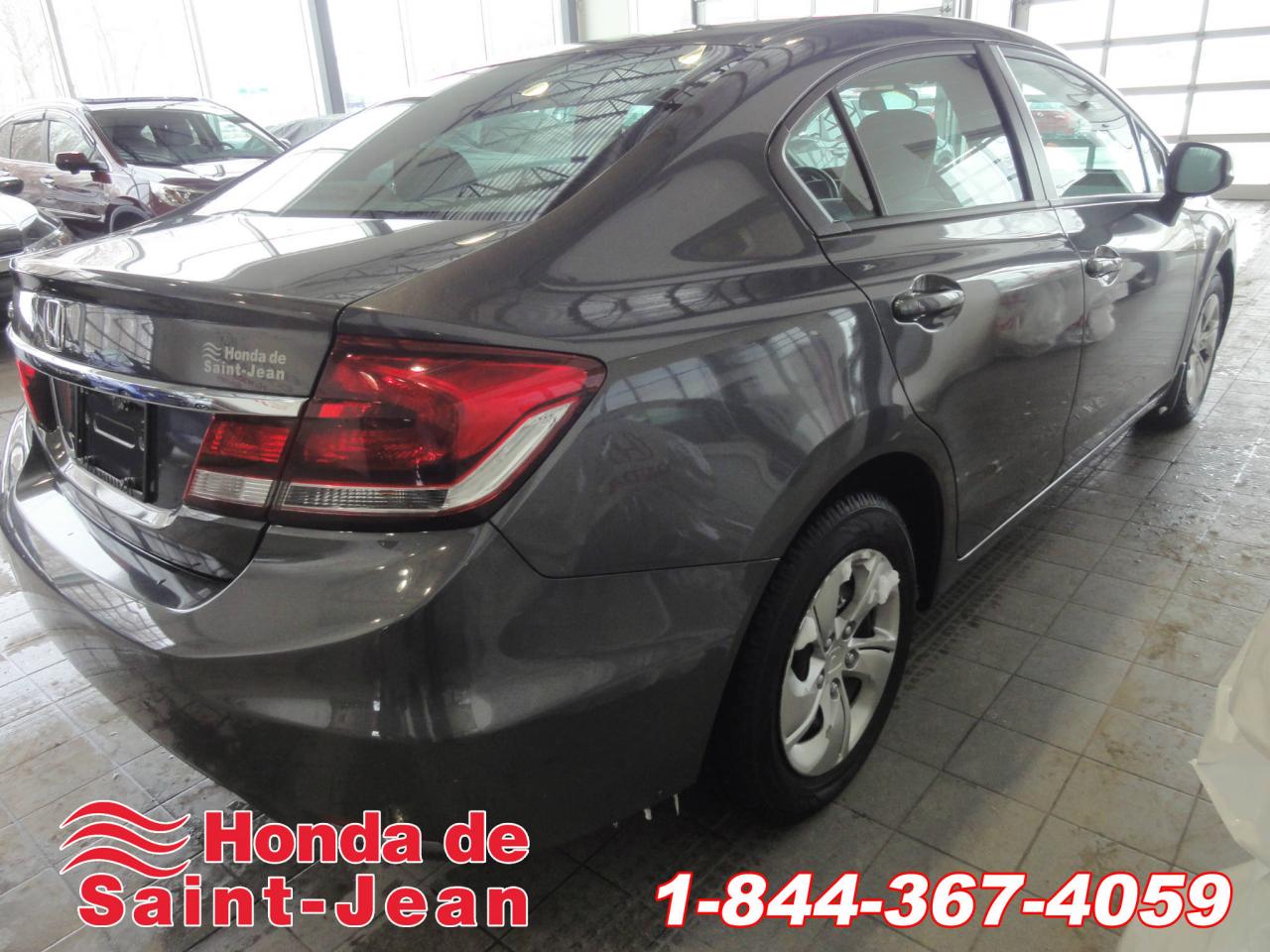 Très belle Civic LX 2013 en excellent état, jamais accidentée, n on-fumeur, toujours bien entretenue!! Inspection mécanique et esthétique effectuée par nos experts Honda. Ce modèle inclus beaucoup d'options, telles que: Transmission Automatique, Freins ABS, Antivol, Technologie Bluetooth intégrée, Lecteur MP3, Phares automatiques, Régulateur de vitesse... et beaucoup plus!! Venez faire un essai routier cette semaine!!