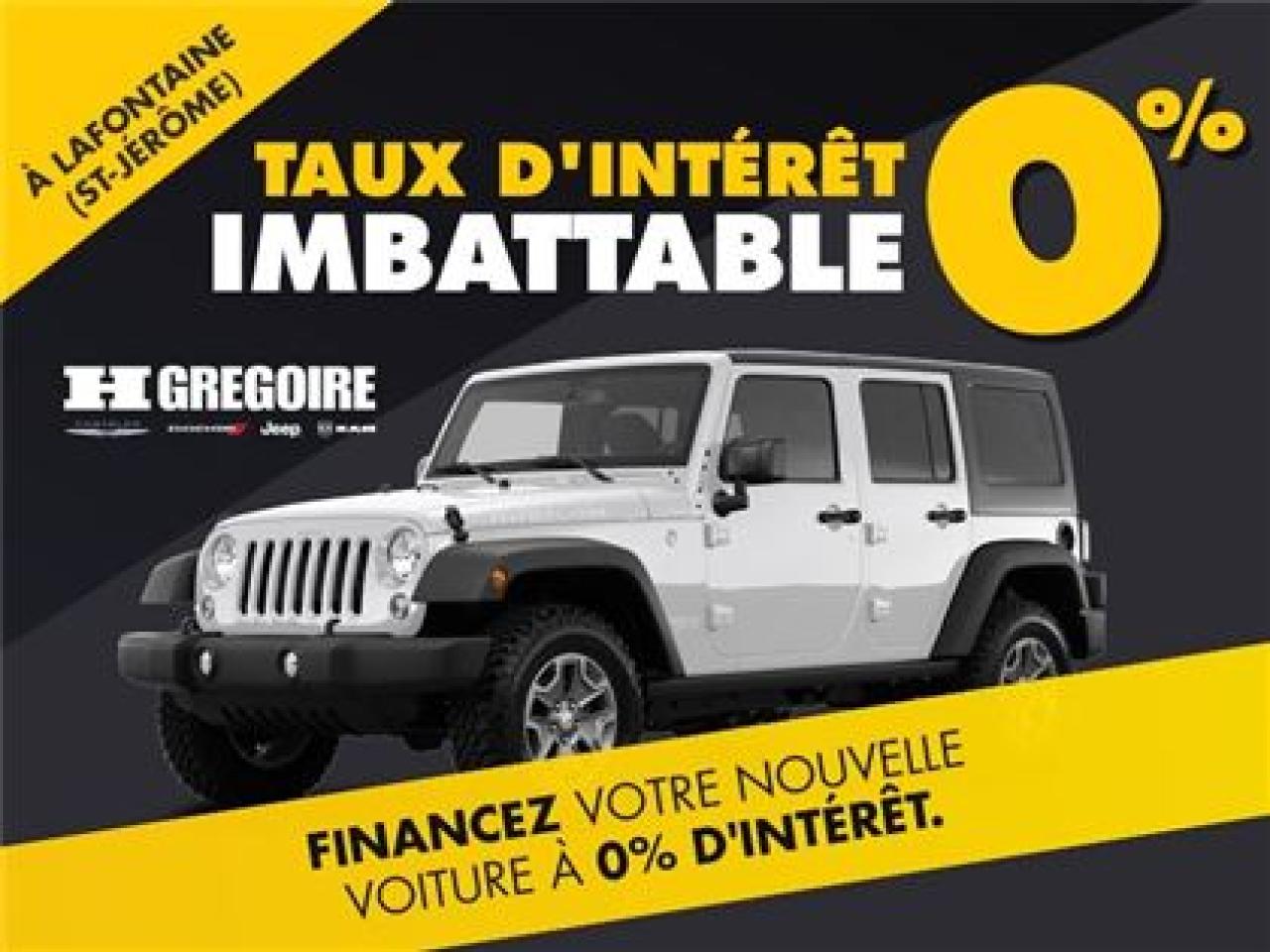 Vehicules neufs a partir de 0% d'interet! Obtenez jusqu'a 30% de plus sur votre vehicule d'echange. Offres exclusives en succursale et GARANTIE DE LA MEILLEURE OFFRE. Arreter de payer plus! Passez nous voir pour decouvrir la force du reseau HGregoire. OUVERT MEME la FIN DE SEMAINE. Passez nous voir! Le Groupe HGregoire c'est 19 succursales en Amerique du Nord. Grace a ce vaste reseau vous obtenez toujours les meilleurs prix autant pour l'achat que pour la vente de votre vehicule. Nos ententes de volume vous permettent egalement de profiter des plus bas taux d'interet possible. Contactez par vous-meme! LE PRIX INCLUT TOUS LES RABAIS CHRYSLER DODGE JEEP RAM. TAXES + TRANSPORT (1695$) + DOCUMENTATION (395$) EN SUS. LE PRIX INCLUS EGALEMENT UN RABAIS SPECIAL ENTREPRENEUR CHRYSLER LAFONTAINE SEUL; ELIGIBLE POUR LES PROPRIO DE CIE. QUI LOUE MIN. 48 MOIS (SI PARTICULIER AJOUTER +1995$)*** *** PROMOTION EXCLUSIVE $$ de CHRYSLER LAFONTAINE $$ * * *RABAIS MANUFACTURIER INCLUT+ AINSI QUE LE RABAIS*** Le CHAMPION DU CAMION câ??est CHRYSLER LAFONTAINE. FAITE VITE SEUL. 5 EN STOCK **