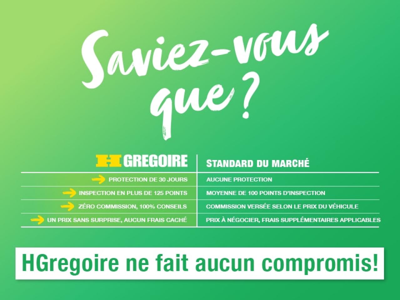 ECONOMISER 36 604$! Aucun frais caché, Taux d'intérêt imbattable! Ouvert 7 jours. Inspection en plus de 125 points et rigoureux processus de remise à neuf. Satisfaction garantie de 3 jours ou argent remis et privilège d'échange 30 jours. Obtenez le meilleur taux de financement et même une 2e ou 3e chance au crédit. Pour plus d'information sur cette voiture et pour obtenir le rapport d'historique CarProof gratuitement, visitez https://www.hgregoire.com/fr-stk/S8261A. *Prix du manufacturier neuf (61 099$)