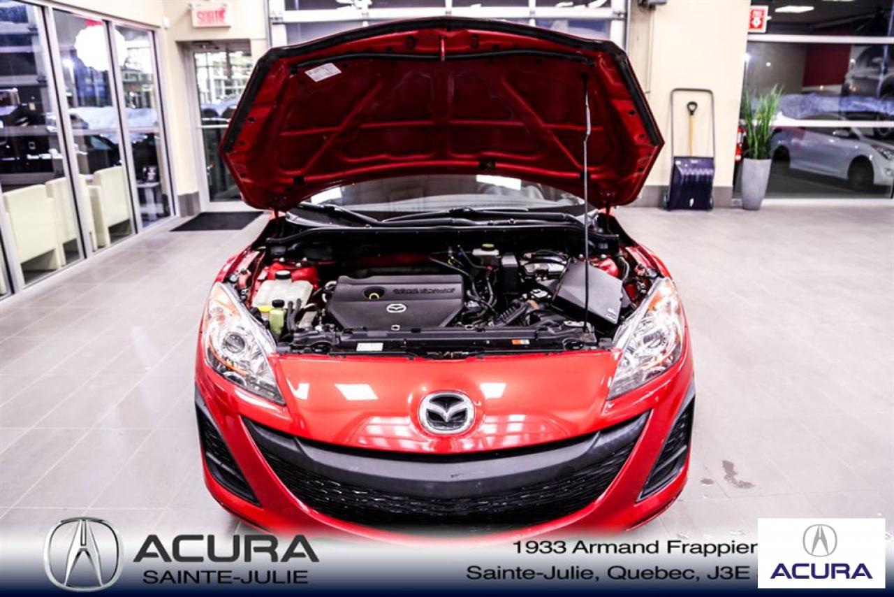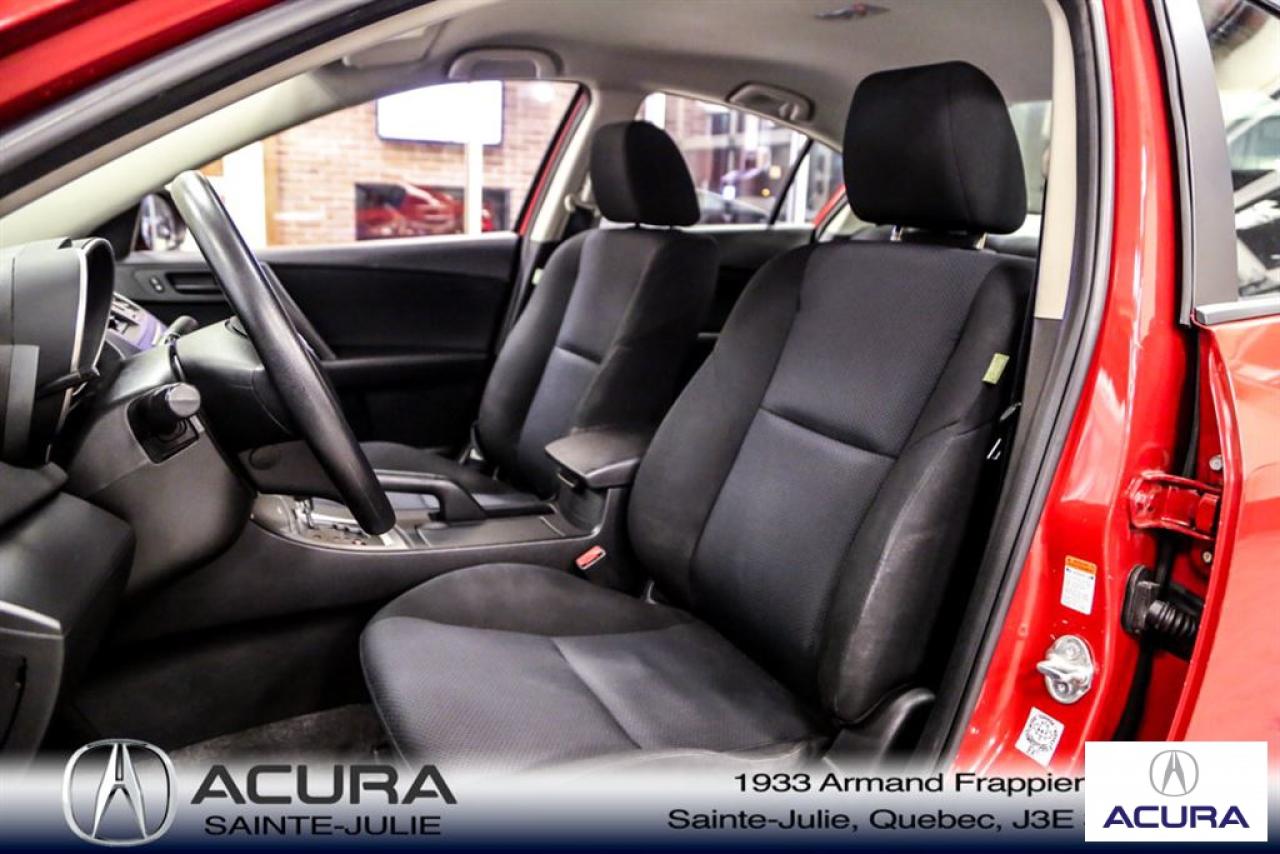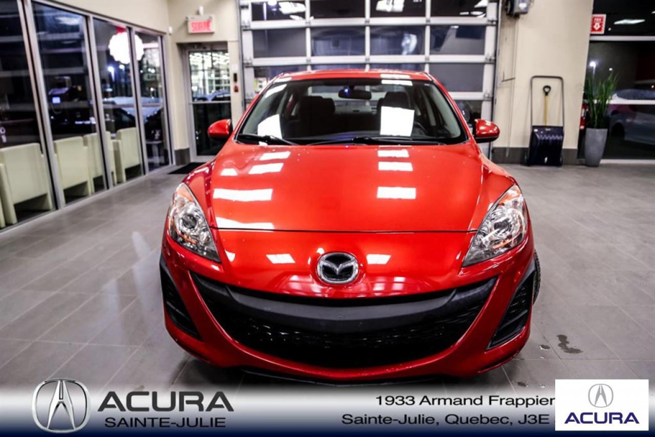 Mazda Mazda3 GS 2010\n\nServo-direction, Essuie-glaces intermittents, Lecteur CD, Déverrouillage à distance, Vitres électriques, Volant ajustable, Radio AM/FM, Intérieur Tissus, Antivol, Coussins gonflables, Sièges baquets\n\nInspection complète 152 points--financement sur place--votre véhicule d'échange évaluer en 15 minutes maximum!!!2eme chance au crédit accepté. TOUS NOS PRIX SONT TRANSPARENT ET DÉJA NÉGOCIÉ AU MEILLEUR PRIX DU MARCHÉ! LE PRIX QUE VOUS VOYEZ EST LE PRIX QUE VOUS PAYER SANS SURPRISES ! ****************************************************************************** VENEZ PROFITER DE L'INVENTAIRE DE VÉHICULES D'OCCASIONS DU PLUS GRAND CONCESSIONNAIRE ACURA DE LA RIVE-SUD. TOUS NOS VÉHICULES SONT INSPECTÉS POUR QUE VOUS PUISSIEZ BÉNÉFICIER D'UN ACHAT EN TOUTE CONFIANCE. NOUS AVONS UNE GAMME DE VÉHICULES USAGÉES DIVERSIFIÉES AVEC RAPPORT DE CARPROOF EN MAIN ET SURTOUT À DES PRIX COMPÉTITIFS!! NOUS DÉSSERVONS LE GRAND MONTRÉAL ET LA RIVE-SUD. SI NOUS NE L'AVONS PAS, NOUS LE TROUVERONS!!! NOTRE ÉQUIPE EST LA A VOTRE SERVICE PAR COURRIEL 6 JOURS SUR 7. N'HÉSITEZ PAS À NOUS CONTACTER CAR NOUS SOMMES DISPONIBLES POUR RÉPONDRE À VOS DEMANDES AU 1-866-765-6707 OU AU ACURASAINTEJULIE.COM ---- All of our vehicules are thoroughly inspected with a 152 points inspection so you can have a WORRY FREE PURCHASE. All Financing options available, even 2nd chance and 3rd chance credit. We welcome trades-in and evaluation is done within 20 minutes plus on-spot delivery available. ALL OUR PRICES ARE FULLY TRANSPARENT AND ALREADY NEGOCIATED AT THE BEST MARKET PRICE. THE PRICE YOU SEE IS THE PRICE YOU PAY WITHOUT SUPRISES! ******************************************************************************** COME TAKE ADVANTAGE OF THE USED CAR INVENTORY OF THE BIGGEST ACURA DEALER ON THE SOUTH SHORE.WE HAVE A DIVERSIFIED INVENTORY WITH AN AVAILABLE CARPROOF REPORT, BUT MOST IMPORTANTLY WE HAVE THE MOST COMPETITIVE PRICES ON THE MARKET!!! OUR TEAM IS THERE TO SERVE YOU 6 DAYS OF THE WEEK. DON'T HESITATE TO CONTACT US SINCE WE ARE HERE TO ANSWER ALL YOUR QUESTIONS AT 1-866-765-6707 OR AT ACURASAINTEJULIE.COM
