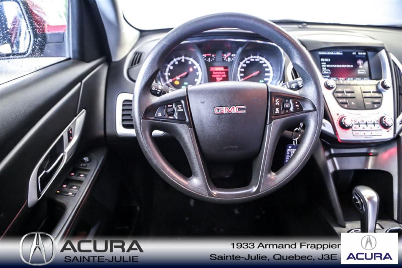 GMC Terrain SLE 2015\n\nRégulateur de vitesse, Servo-direction, Essuie-glaces intermittents, Contrôle de stabilité, Lecteur CD, Déverrouillage à distance, Vitres électriques, Volant ajustable, Vitres teintées, Radio AM/FM, Rétroviseurs, Intérieur Tissus, Contrôle de traction, Système d'alarme, Pare-soleil avec miroir illuminé, Phares antibrouillards, Coussins gonflables, Sièges baquets, Climatisation\n\n*** SEULEMENT 91$ / SEM SUR 72 MOIS À 5.99% AUCUN COMPTANT, TOUT INCLUS, TAXES ET GARANTIE COMPLETE 48 MOIS OU 80 000 KM **** Inspection complète 152 points--financement sur place--votre véhicule d'échange évaluer en 15 minutes maximum!!!2eme chance au crédit accepté. TOUS NOS PRIX SONT TRANSPARENT ET DÉJA NÉGOCIÉ AU MEILLEUR PRIX DU MARCHÉ! LE PRIX QUE VOUS VOYEZ EST LE PRIX QUE VOUS PAYER SANS SURPRISES ! ****************************************************************************** VENEZ PROFITER DE L'INVENTAIRE DE VÉHICULES D'OCCASIONS DU PLUS GRAND CONCESSIONNAIRE ACURA DE LA RIVE-SUD. TOUS NOS VÉHICULES SONT INSPECTÉS POUR QUE VOUS PUISSIEZ BÉNÉFICIER D'UN ACHAT EN TOUTE CONFIANCE. NOUS AVONS UNE GAMME DE VÉHICULES USAGÉES DIVERSIFIÉES AVEC RAPPORT DE CARPROOF EN MAIN ET SURTOUT À DES PRIX COMPÉTITIFS!! NOUS DÉSSERVONS LE GRAND MONTRÉAL ET LA RIVE-SUD. SI NOUS NE L'AVONS PAS, NOUS LE TROUVERONS!!! NOTRE ÉQUIPE EST LA A VOTRE SERVICE PAR COURRIEL 6 JOURS SUR 7. N'HÉSITEZ PAS À NOUS CONTACTER CAR NOUS SOMMES DISPONIBLES POUR RÉPONDRE À VOS DEMANDES AU 1-866-765-6707 OU AU ACURASAINTEJULIE.COM ---- *** ONLY 91$ / WEEK ON 72 MONTH AT 5.99% AND 0$ CASHDOWN, ALL INCLUDED, TAXES AND A COMPLETE 48 MONTH / 80 000 KM WARRANTY *** All of our vehicules are thoroughly inspected with a 152 points inspection so you can have a WORRY FREE PURCHASE. All Financing options available, even 2nd chance and 3rd chance credit. We welcome trades-in and evaluation is done within 20 minutes plus on-spot delivery available. ALL OUR PRICES ARE FULLY TRANSPARENT AND ALREADY NEGOCIATED AT THE BEST MARKET PRICE. THE PRICE YOU SEE IS THE PRICE YOU PAY WITHOUT SUPRISES! ******************************************************************************** COME TAKE ADVANTAGE OF THE USED CAR INVENTORY OF THE BIGGEST ACURA DEALER ON THE SOUTH SHORE.WE HAVE A DIVERSIFIED INVENTORY WITH AN AVAILABLE CARPROOF REPORT, BUT MOST IMPORTANTLY WE HAVE THE MOST COMPETITIVE PRICES ON THE MARKET!!! OUR TEAM IS THERE TO SERVE YOU 6 DAYS OF THE WEEK. DON'T HESITATE TO CONTACT US SINCE WE ARE HERE TO ANSWER ALL YOUR QUESTIONS AT 1-866-765-6707 OR AT ACURASAINTEJULIE.COM